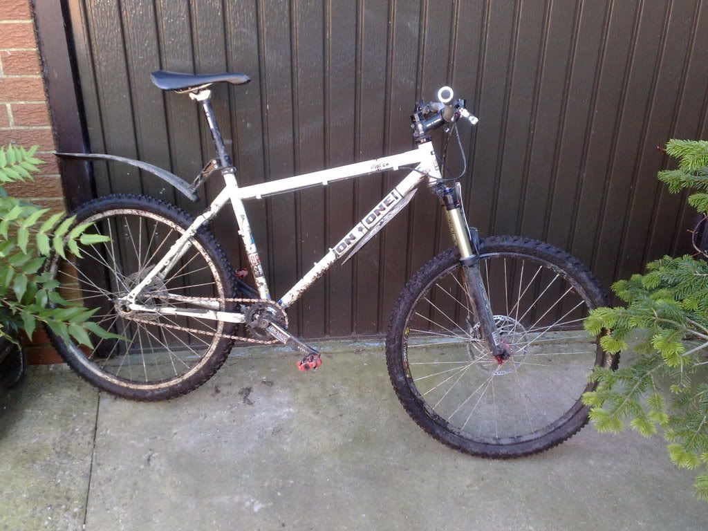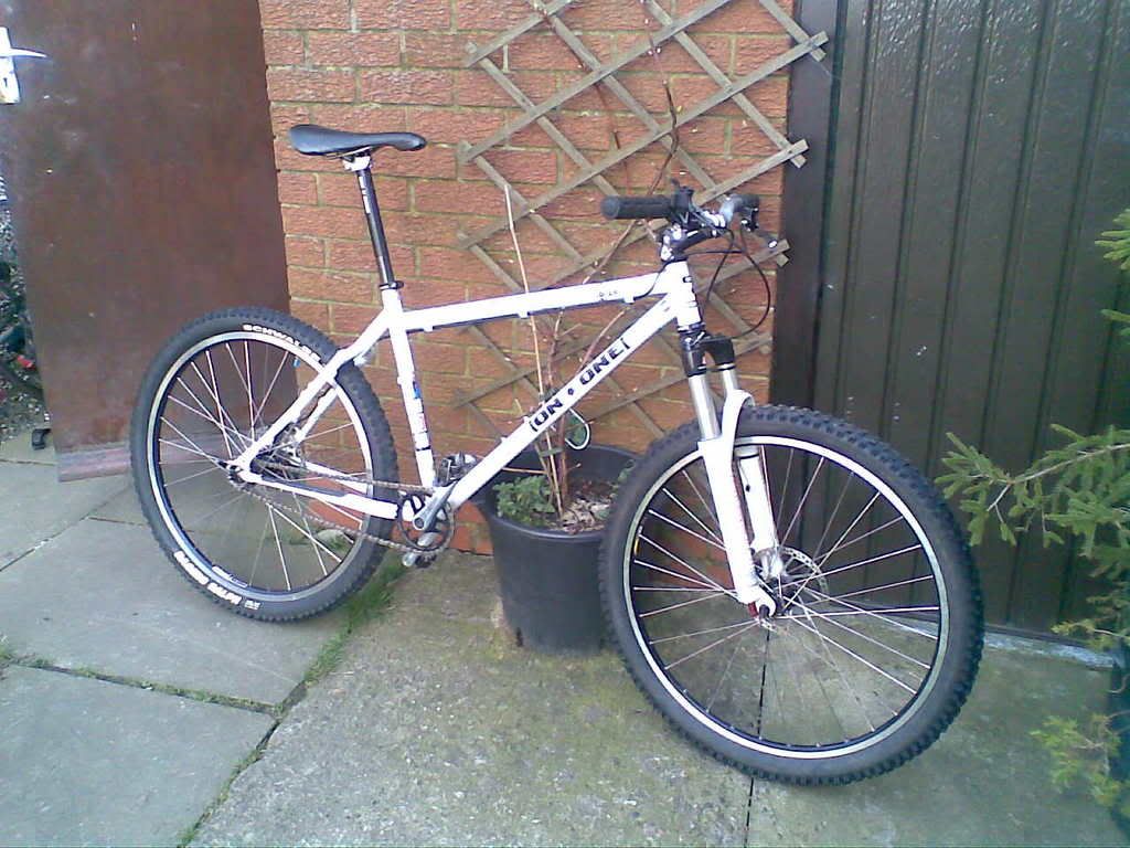 And the most recent - built this week and ridden no further than the bottom of the garden (now with sorted stem and gear cables). Has replaced my short travel geared bike to hopefully learn me some skillz.