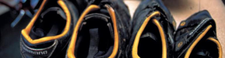 I could go on; the tumescent rasp of Velcro, the taught squeak of pulled laces, feeling a ratchet mechanism flex near its limit as you force it one more click, the glorious agony of shoes shrunk half a size by washing, the complex issue of tightening as the shoe, gets wet and stretches – straps pulled tighter still and lolling off the sides like cows tongues, spending three times as much on a cycling shoe than you would ever dare on a ‘normal’ pair, the important subject – related but totally separate – of the perfect white sock…
