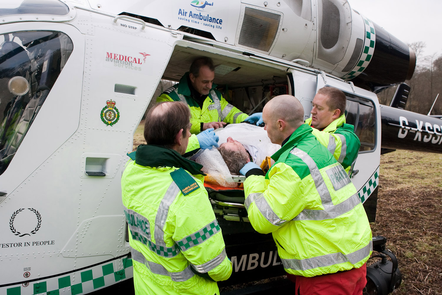 Sussex Air Ambulance attend accident at cyclocross bike race at Walstead School, near Lindfield.