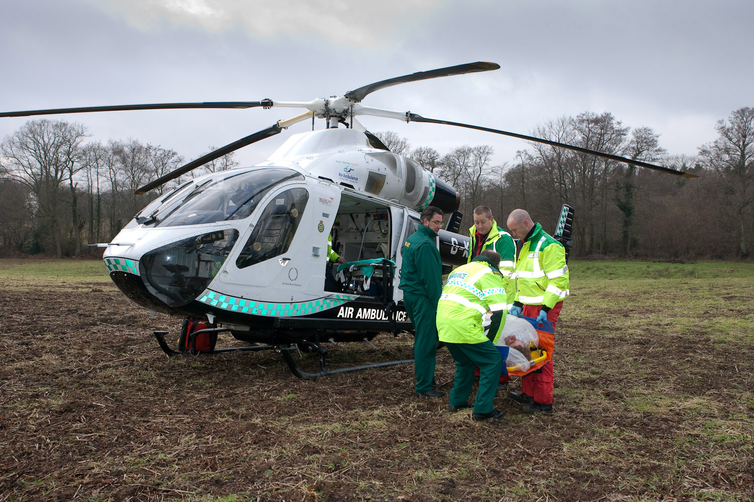 Sussex Air Ambulance attend accident at cyclocross bike race at Walstead School, near Lindfield.