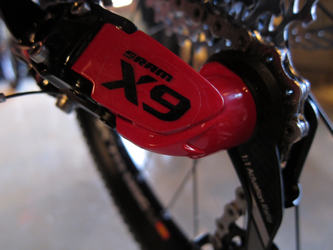A short cage XO rear mech (in one of the four colour schemes) and a carbon Edge rim in the distance. Nice.
