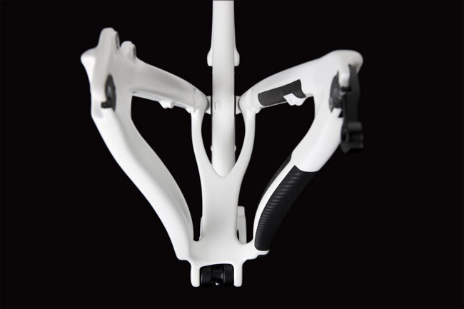 One piece lay-up and molding allows the use of continuous fibers throughout the frame, meaning the structure can more widely distribute loads and absorb impact energy.