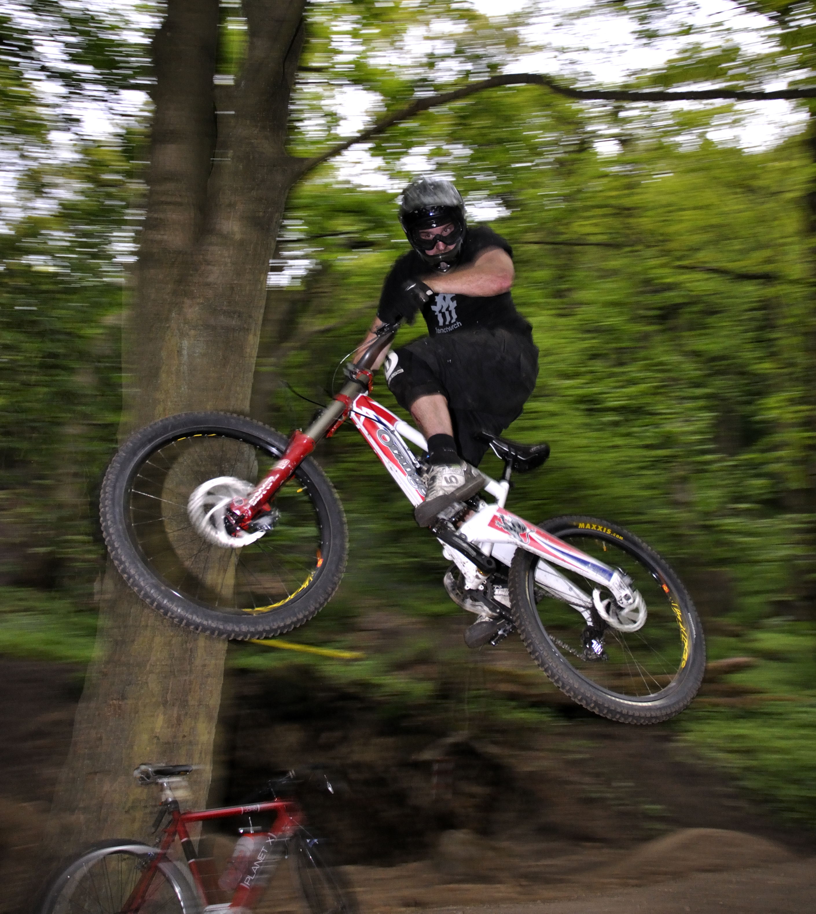 that lad in black jumping….he is actually looking where he wants to go as his handlebars won’t turn!!!! He knows who he is!