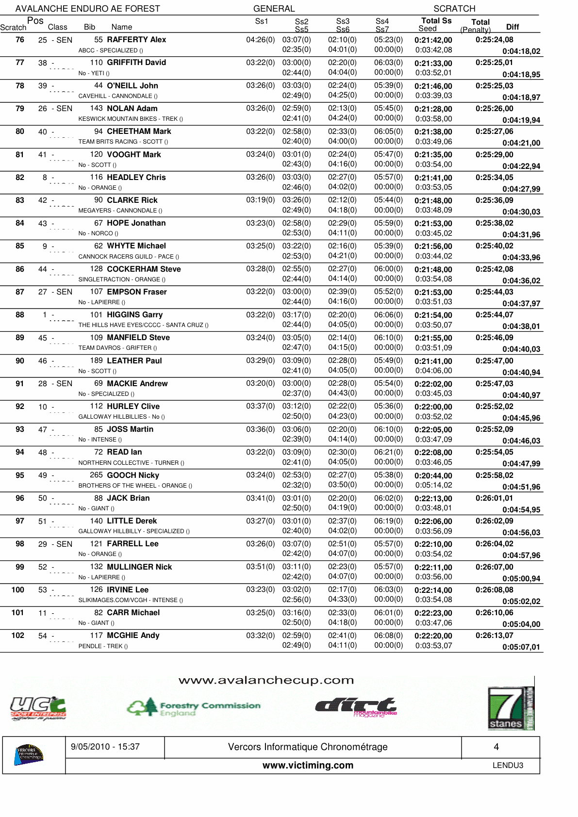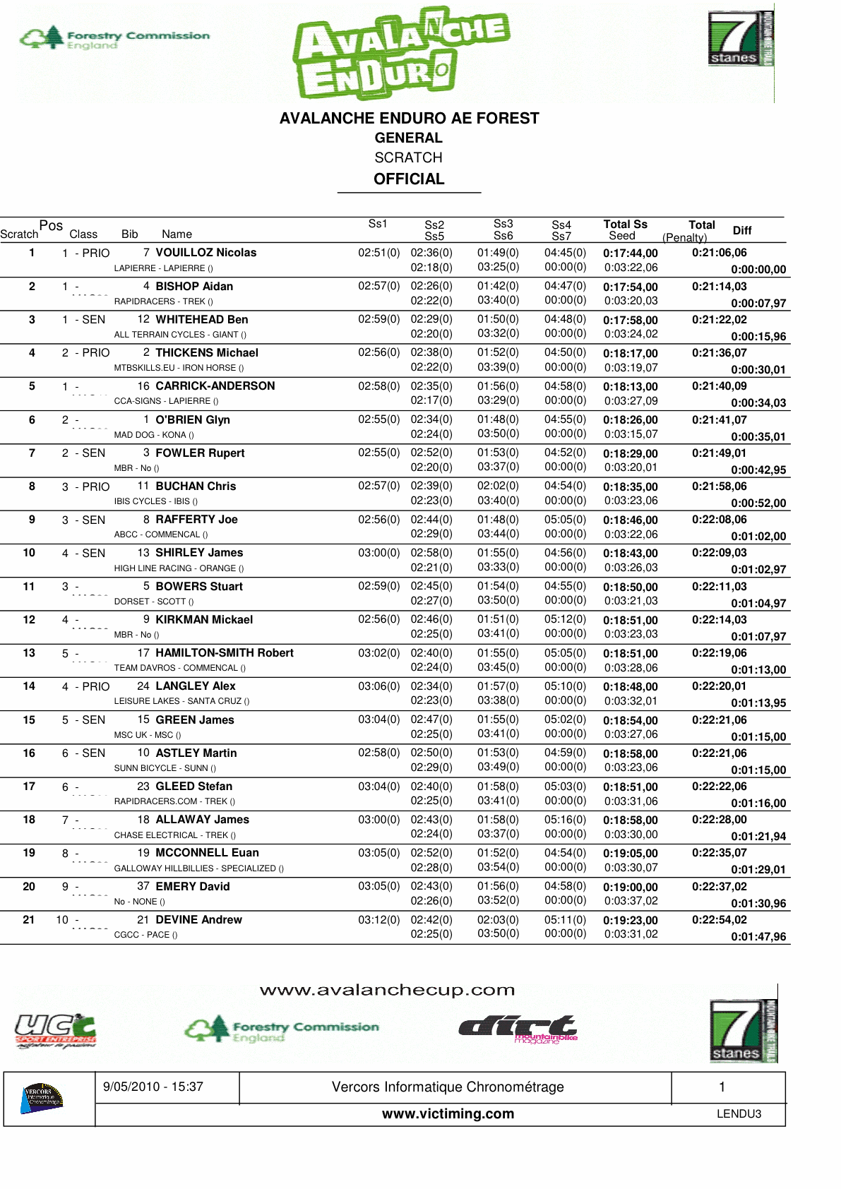 Stage 1: Nicolas VOUILLOZ made the best time in 2min51, second position 2min55 for Glyn O’BRIEN & Rupert FOWLER.