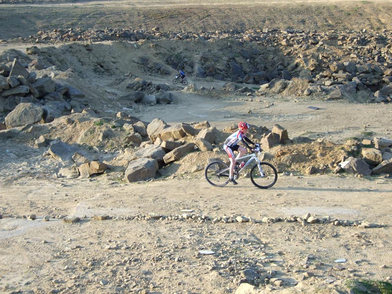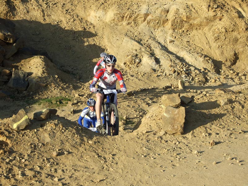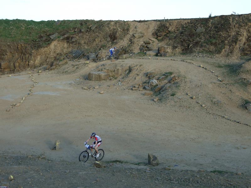 We have built a semi permanent course within a disused Quarry with the permission of the owners Myers group. The course is mainly loose stone and rock with a grass section around the top to slow everyone down there are some nice technical features with the races riding the drainage gullys each lap and in and out of the quarry working. The course is safe and anyone who rides a Mountain bike will NOT be out of their depth with the XC lap.