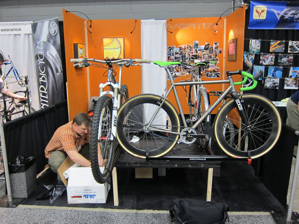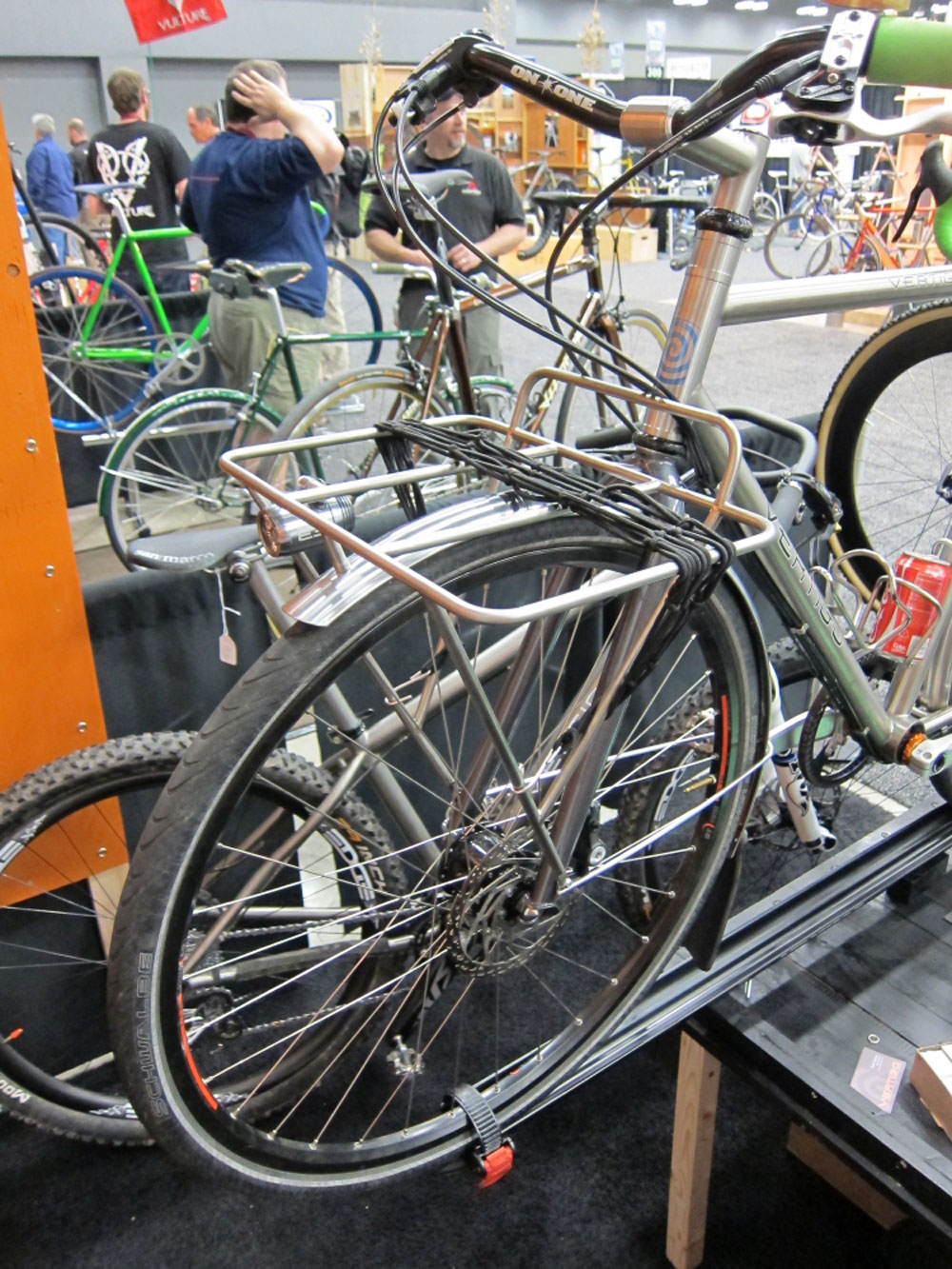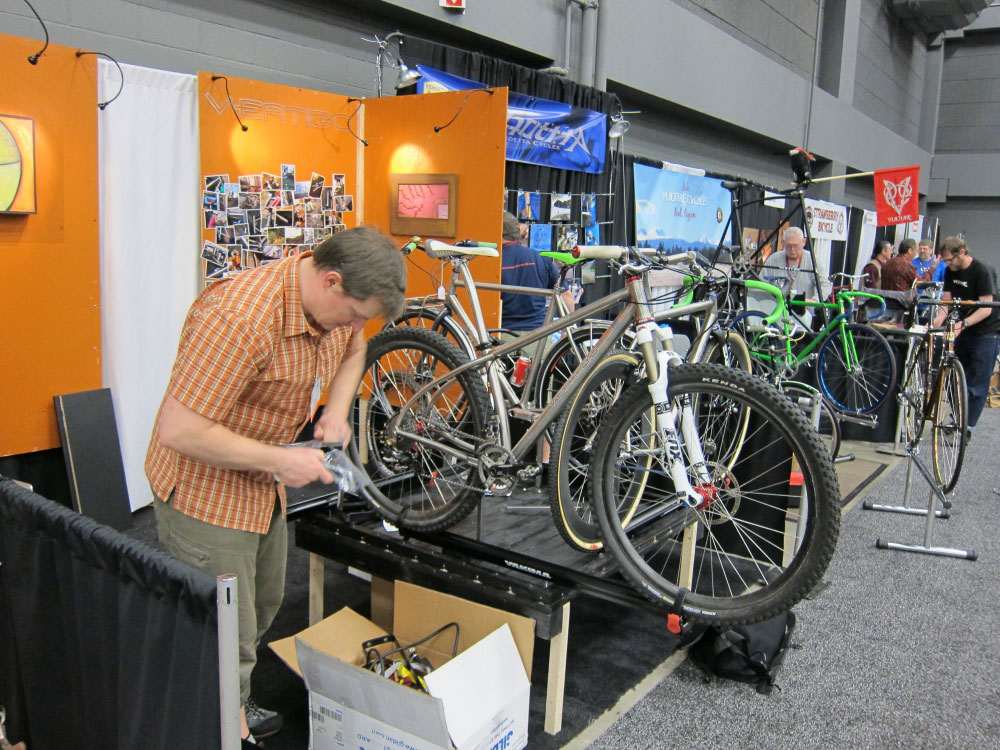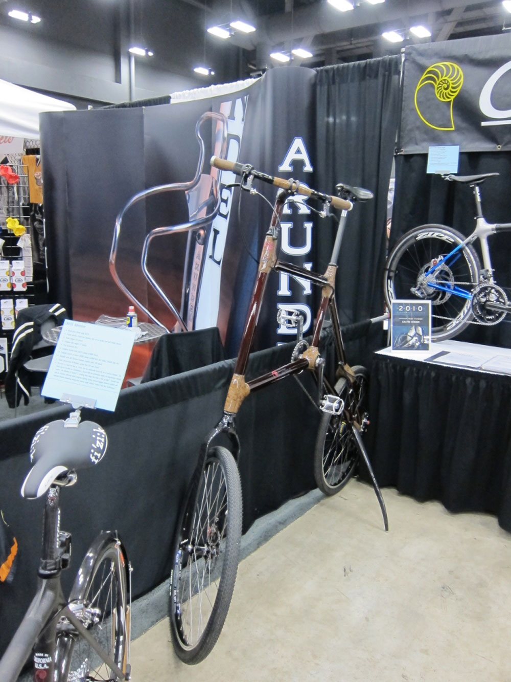 “The 2011 North American Handmade Bike Show is back in Austin, Texas this year. Although Austin is famous for Lance Armstrong, music festivals such as South by South West and superb BBQ food, we are here to see what the custom bike fabricators have to offer. In past years, there have been some raised eyebrows at the $4,000 commuting bikes, but this year it seems to be all business, with countless lightweight and beautiful road racing bikes, some stout looking trail bikes, singlespeeds in every imaginable material and a slew of ‘adventure’ bikes – basically cross bikes with slacker geometry and space for mudguards and rack mounts.