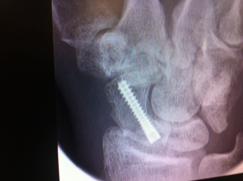This news took me a while to come to terms with and at the time I felt devastated. I was able to look at my X-rays for the first time and I have to say I can’t see a crack in the bone anymore, just a ruddy great screw holding it all together. However, if I fall on my hand again, breaking my wrist, that means I would need another operation to remove the existing screw and I would also need a bone graft to be taken from my hip to aid the union. I have to wear this cast again over Christmas and my follow up appointment is on the 17th of January 2012. I hope that on this day I’ll lose the cast and be back on the bike.