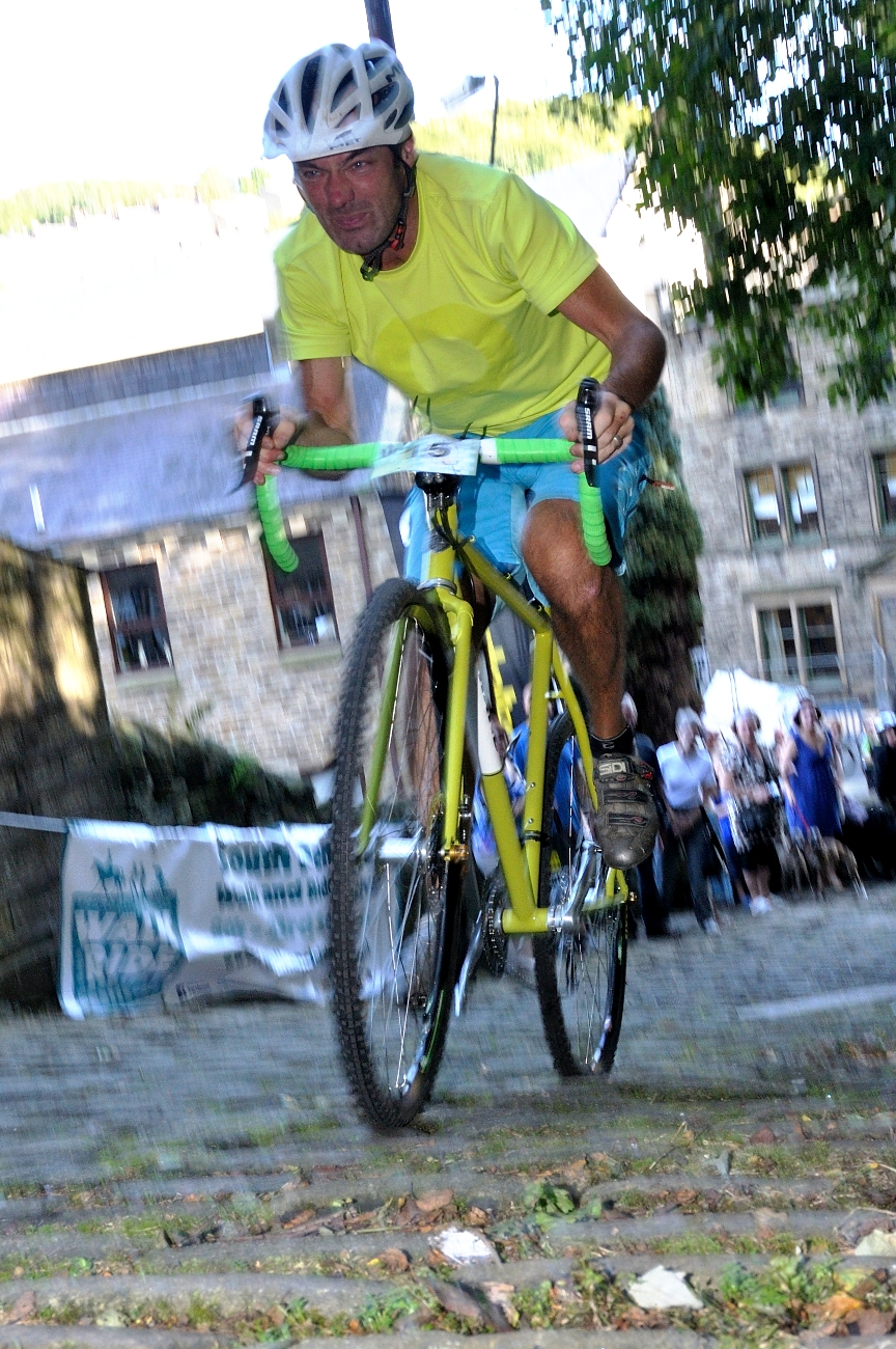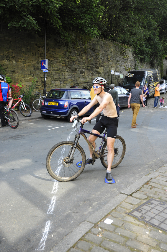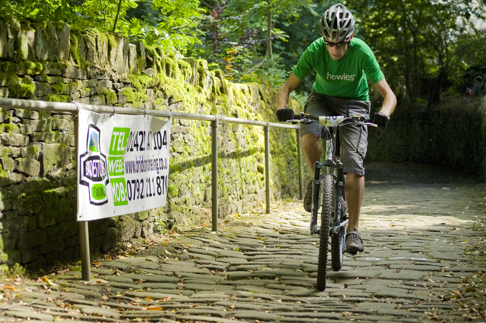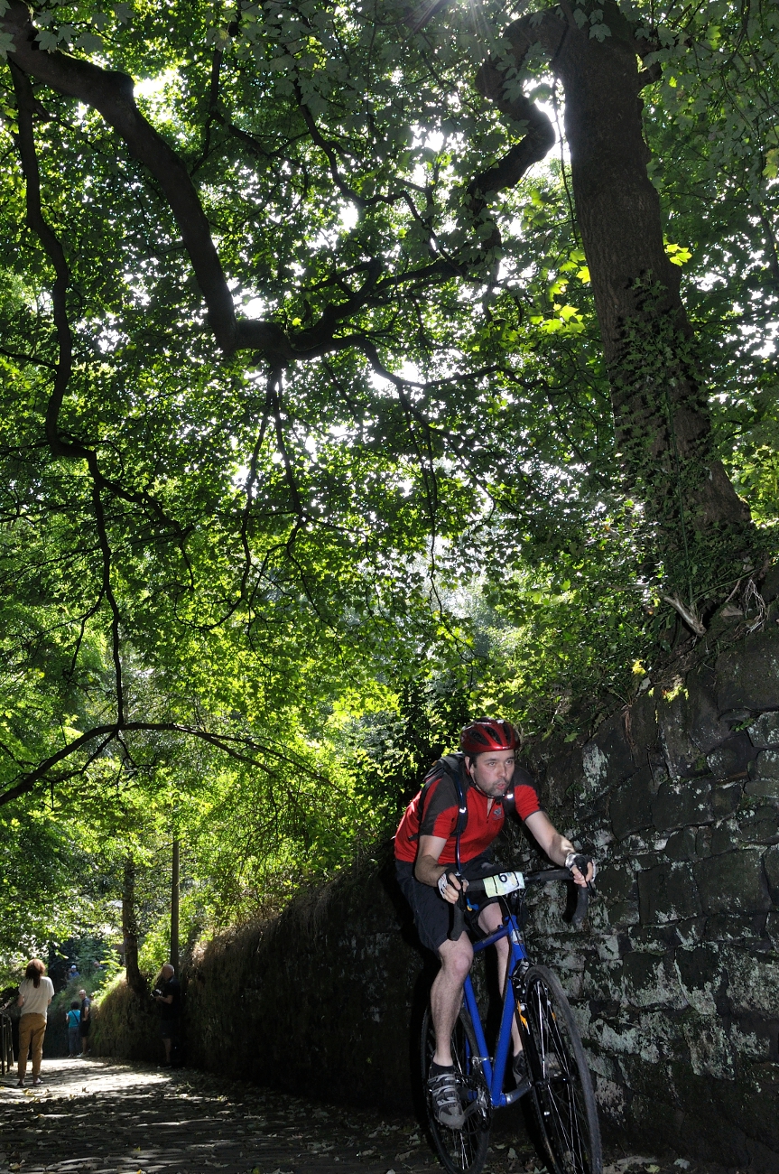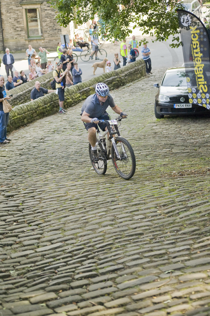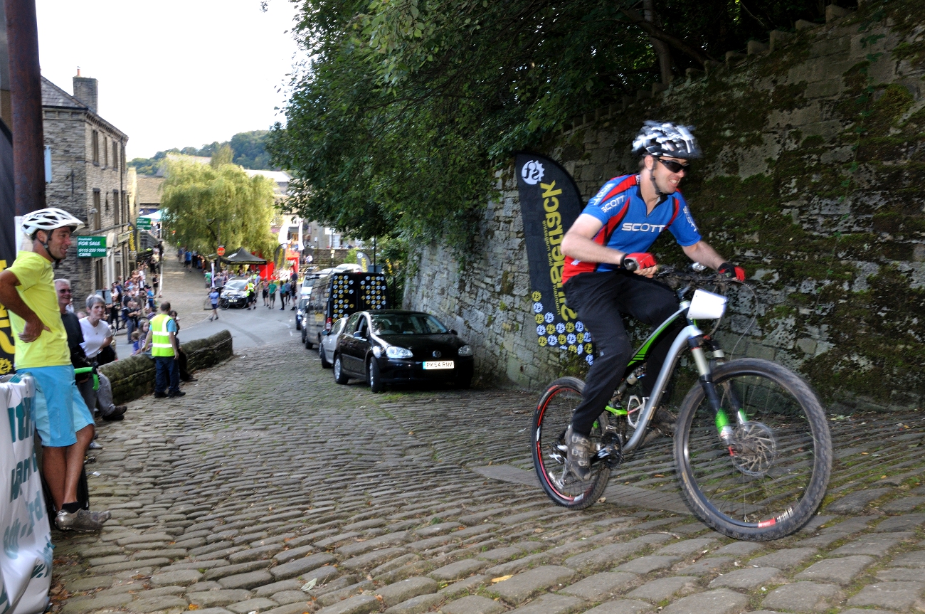 41 brave folk turned up to take on the mighty Hebden Bridge Buttress on Saturday. The 400 yard cobbled climb took no prisoners and for the majority of riders starting from the old town bridge, guaranteed a lung-burning climb under the gaze of a vocal crowd of spectators and semi-professional hecklers.