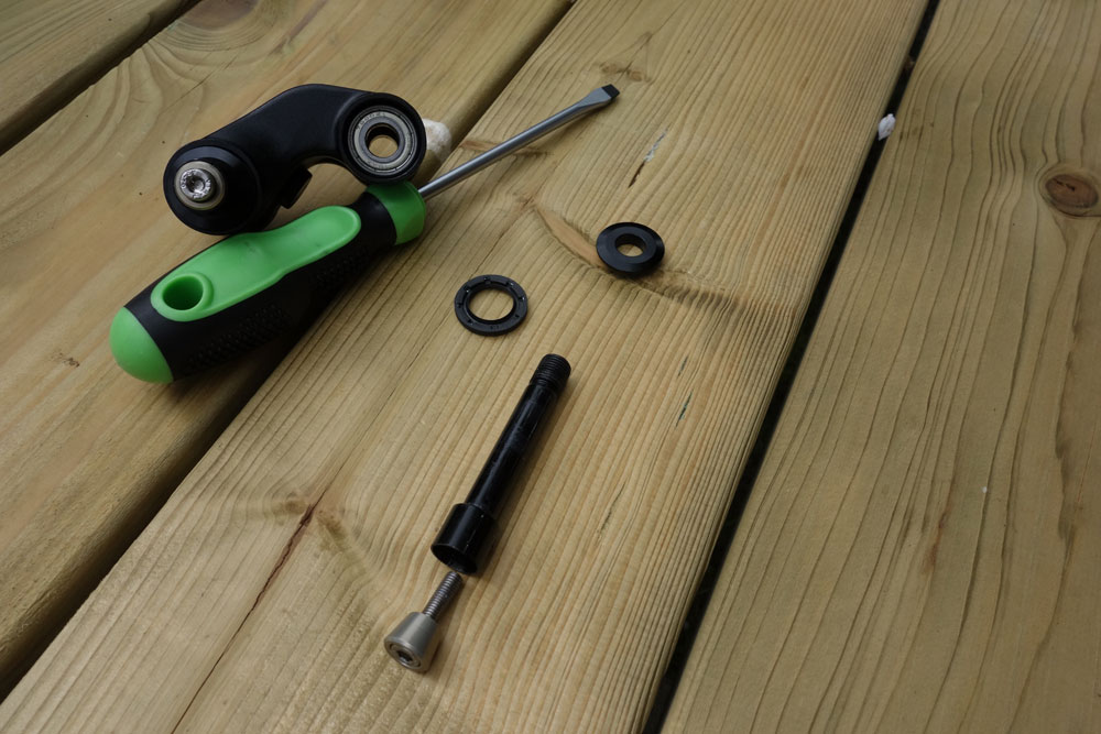 Both the carbon and the aluminium Tallboys have been loved-up and both are the first to feature the new lower VPP link which has been designed with UK riders in mind. The whole link can be removed (and was, in front of our eyes) with a couple of Allen keys, without needing to remove cranks or even the back wheel. The bearings are sealed on the outside with a metal, rather than the usual rubber lip seal, which is then covered with a one-way grease cover. The link is designed to be filled with grease, which then passes through the un-sealed inner side of the bearing and then out of the metal and one-way seals to keep grease in and the water out…