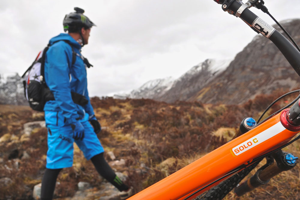 The new bike, the Santa Cruz Solo, in brief, is a 125mm trail bike with 27.5in wheels, available in aluminium or carbon. Santa Cruz is pitching it as ‘get out there and explore’ bike and it comes complete with a promo video featuring a bothy-sleeping, fire-lighting Steve Peat up in the wilds of Scotland.