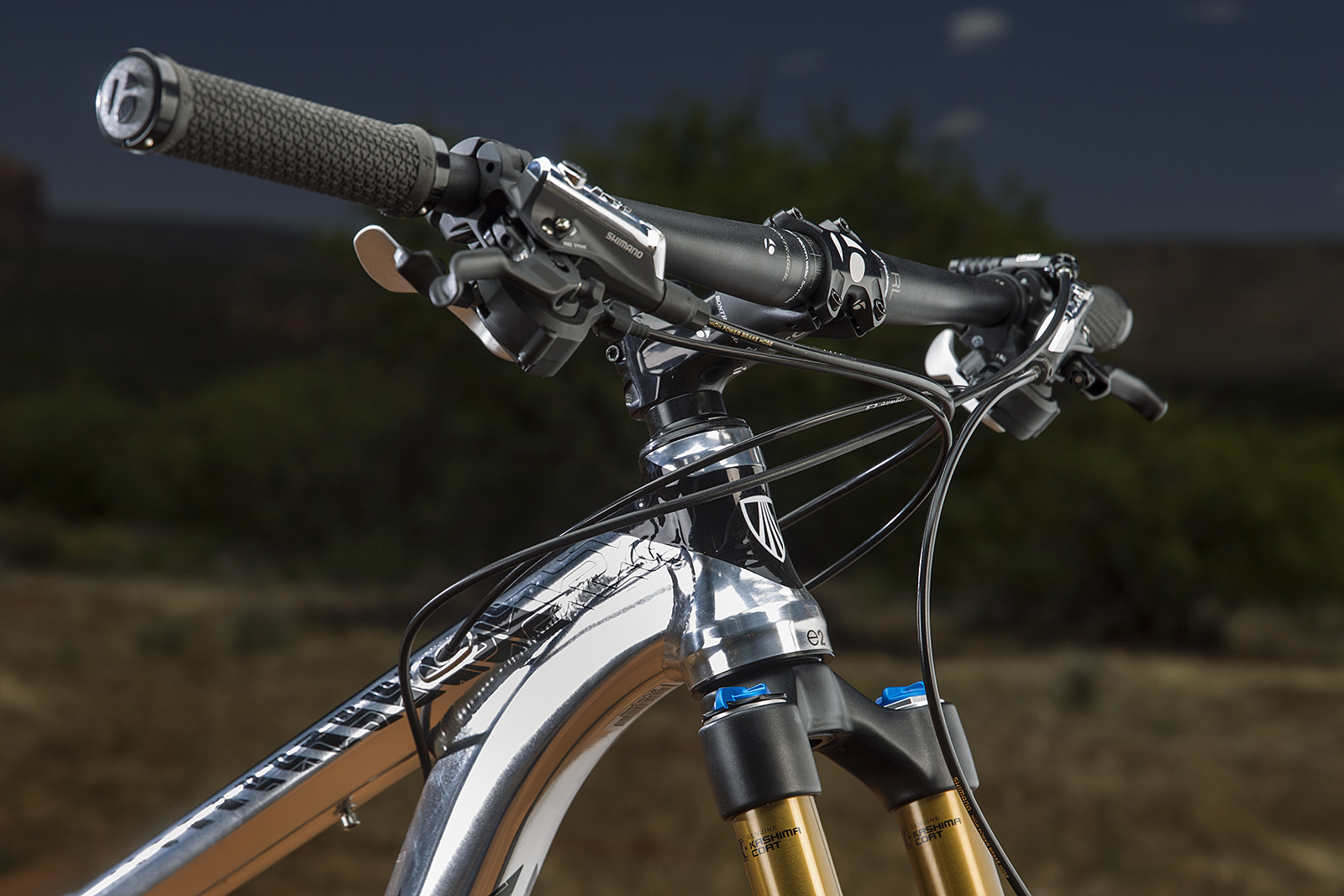 The fork on the 9 is a Fox Factory 34 29r with Kashima coating and has the proprietary Gary Fisher offset for 29rs. The shock is unique to Trek and is developed pretty much in house (They have a specific suspension R&D department) right up to proto-type stage before it goes off to Fox to be built. Fox engineers are involved from the start though – Trek would be silly to just simply use Fox as a final manufacturing facility for their designs. Indeed, it’s doubtful that Fox would even put their name to the final product if they weren’t entirely happy that the thing works as best as they think it can with the Remedy frame. Trek is big enough a company that they can work this way with Fox and the result is a collaborative approach to matching the shock to the characteristics of the frame rather than starting from the off the peg shock and designing the frame around it that most smaller bike companies have to do.