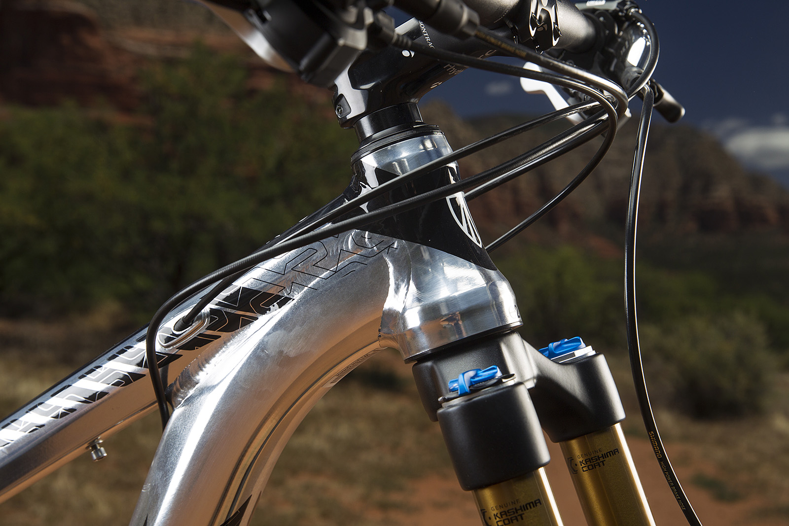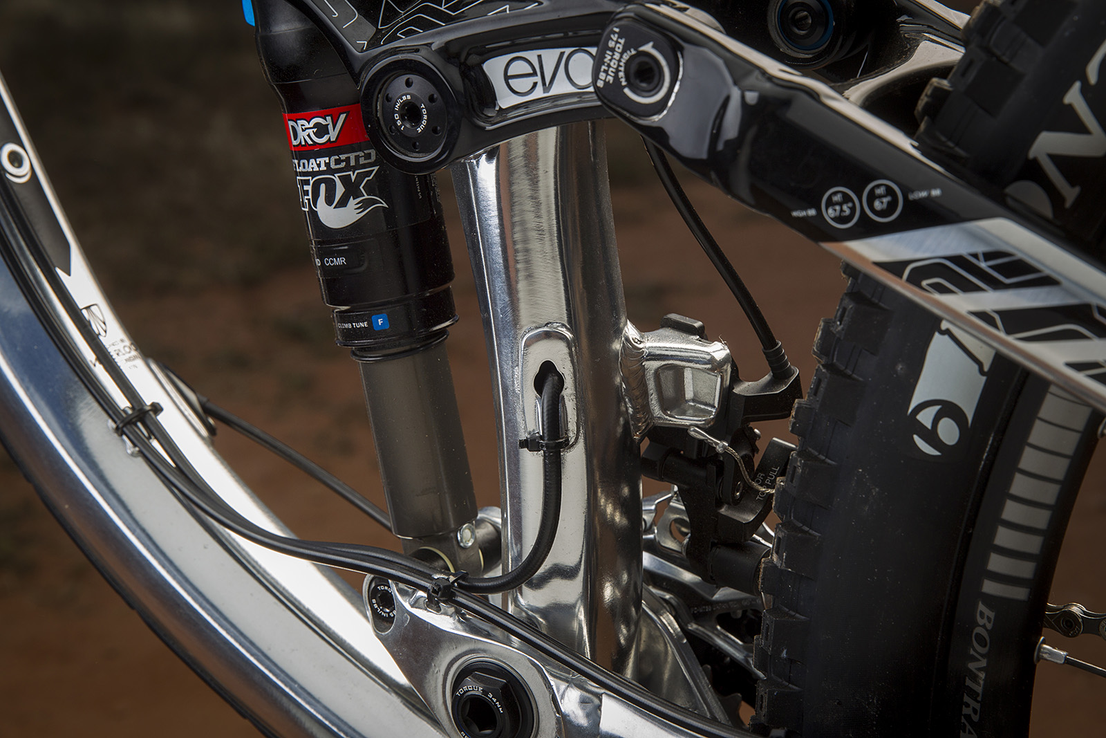 There are other differences between the two, perhaps the most significant being the difference of half a degree in head angles between the two models. The 26 version is the slackest at 67 with the 29r coming in at 67.5. But you can alter the geometry on both by half a degree by rotating the ‘Mino’ link at the top of the seat stay linkage. The suspension travel is 10mm longer at 150mm in the 26 version compared to the 140mm of the 29r.