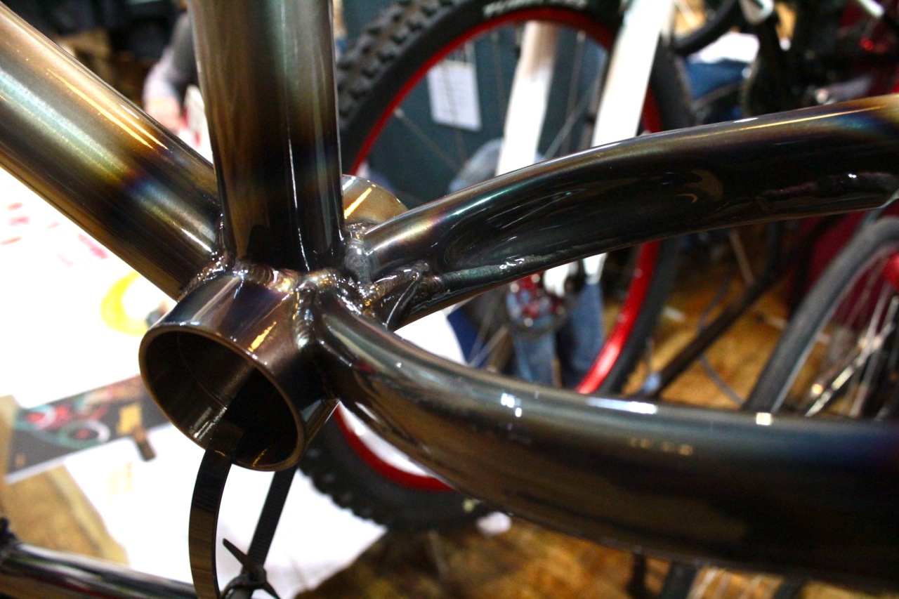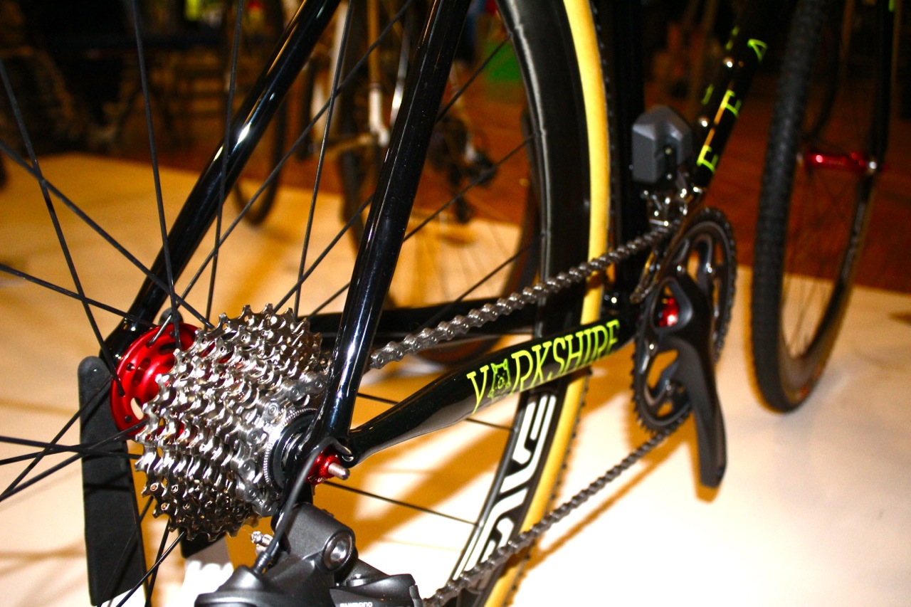 Feather Cycles was our stand-out bike highlight of the show: made in Yorkshire, it’s builder Ricky Feather’s personal race-ready bike that’s headed for some of the Yorkshire ‘cross rounds. Ricky explained his decision to stick with canti brakes over discs simply because he’d already bought himself some nice hubs – and as it’s his own bike, we reckon that’s perfectly fine…