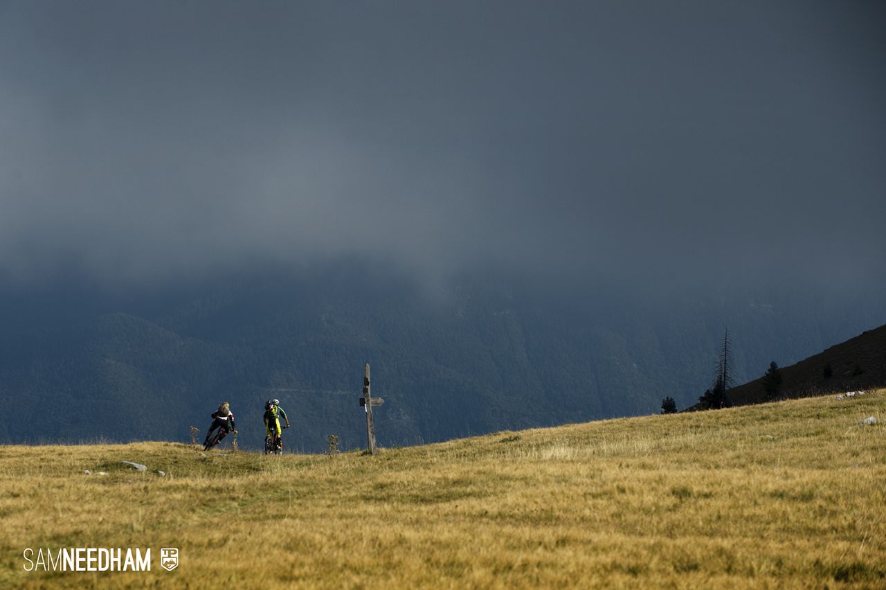After a third ride up, the lift riders traversed across the valley crossing high mountain passes; including incredibly fast “pick it and stick it”, multi option sheep track at warp speed that would be dangerous if it was timed on a Special Stage, and short tech climbs before they reached the final Special (Special Stage 16) of the day.