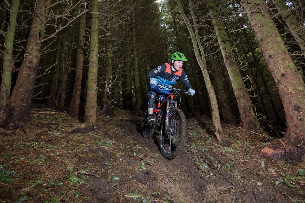 We climb again, taking in another local favourite – this time fast and open, with plenty of opportunity for our shallow-treaded, trail-centre-friendly tyres to drift wide, eliciting squeals of excitement as riders fight to regain a slide here and a speed wobble there.