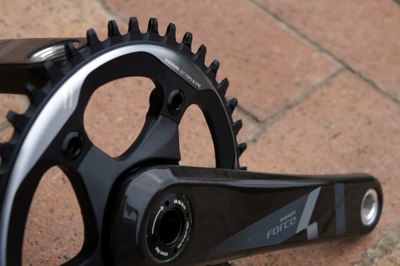 The oft-imitated (and increasingly licensed) X-Sync chainring profile has been updated for cyclocross use with deeper scallops at the base of the teeth to improve mud shedding. On the back side, the thick section of the teeth has been undercut to reduce weight. Because the chainrings’ driving characteristics aren’t compromised by the need to shift, SRAM feel that 1x drivetrains run quieter and feel more solid than doubles and triples- a claim that our XX1/XO1 experience supports.