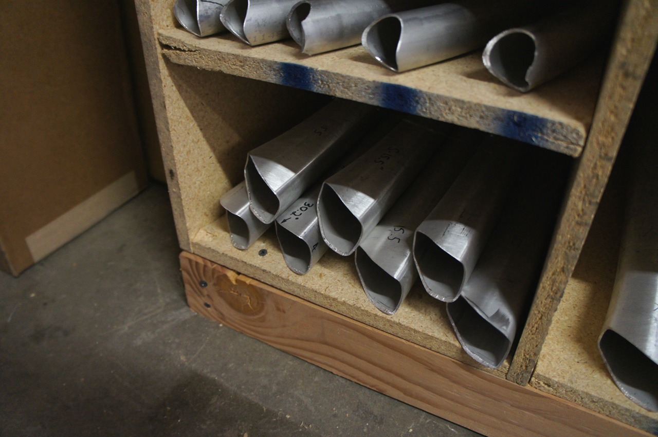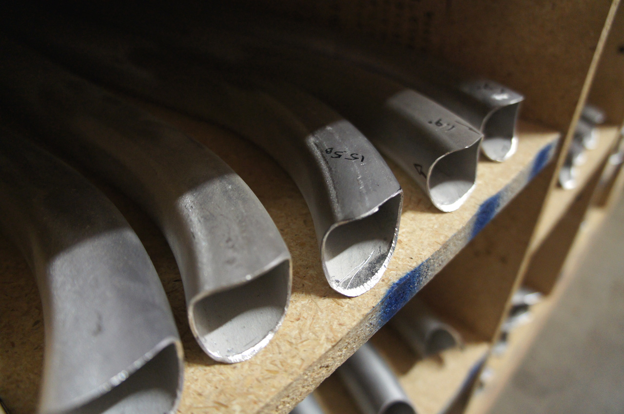Rows of Durango bikes and frames line the walls – from freshly welded Moonshine enduro frames to well-ridden prototypes – while bikes from Jeff’s past as a semi-professional downhiller provide historical context. A vertical mill machines bearing seats into raw frames and several fixtures arrange custom-formed Alcoa tubes for welding. Nearby, Jeff & Wendy’s sixteen year-old son helps to prepare a customer’s frame for delivery while saving up for his first car.