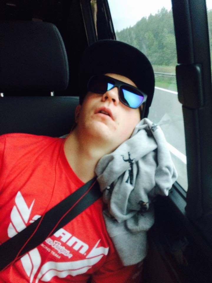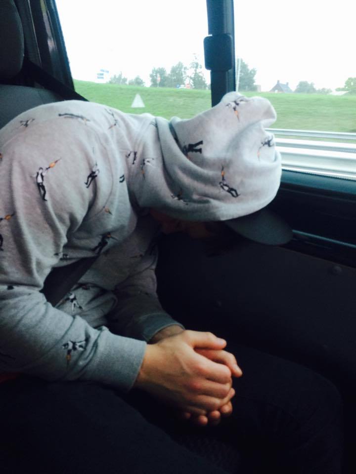 Young Dan found the 700km journey through two countries a bit too much and spent much of it asleep.