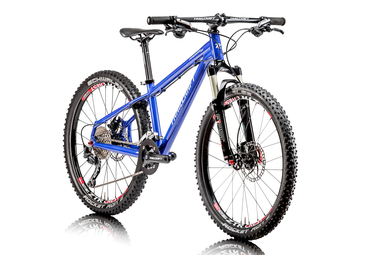 The aluminium Pineridge 24 is available either as a frame/fork/crankset kit for $1,200 (£765) or as a rather nice bike at $1,700 (£1,085). 1,300g The complete bike’s Stan’s rims, lightweight Ashima rotors, and dual-compound Schwalbe tyres are all nice touches- as are the Shimano Deore drivetrain and brakes. Complete, the Trailcraft 24 weighs an enviable 21.8lb.