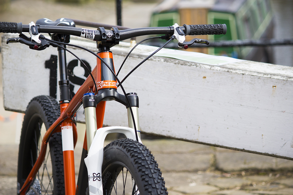We’ve had this FF29er in to review, set up for the so-hot-right-now 27.5+ semifat sort of thing. It’s a 29in frame and fork, and with those 27.5 fat tyres in there it LOOKS ACE! Apparently Kinesis will be offering the wheels, frame and fork as part of a rolling chassis. We’ll update with prices etc when we get them. For now…