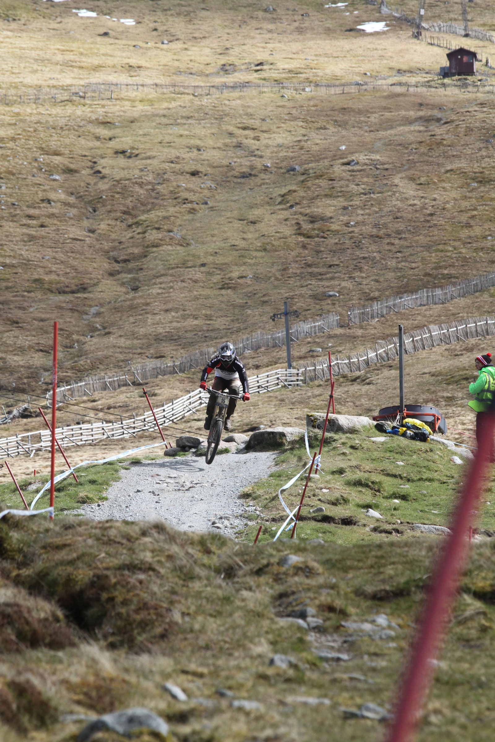 Manon launches into the sunshineElite rider practice was blessed with good weatherBrendog looking fast on Bangers BermSam Dale on the fast upper bit of the course