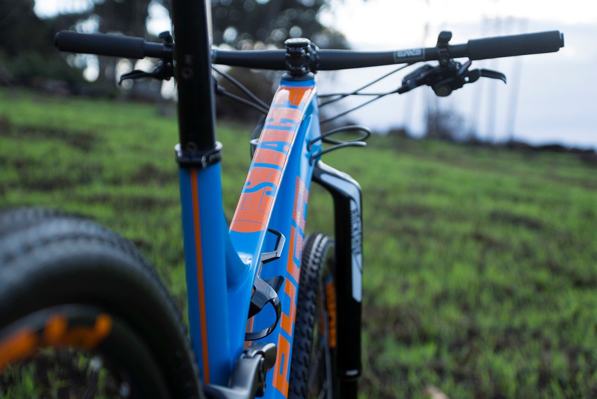Its 29in wheels, carbon frame and 95mm of rear travel are matched to a relaxed (for XC, anyway) head angle (68.5 degrees), 120mm fork, longer top tubes and shorter stems (sound familiar?). There’s also a Stage MAX (natch), which increases rear travel to 126mm, fork to 140mm and aims at the trail market.