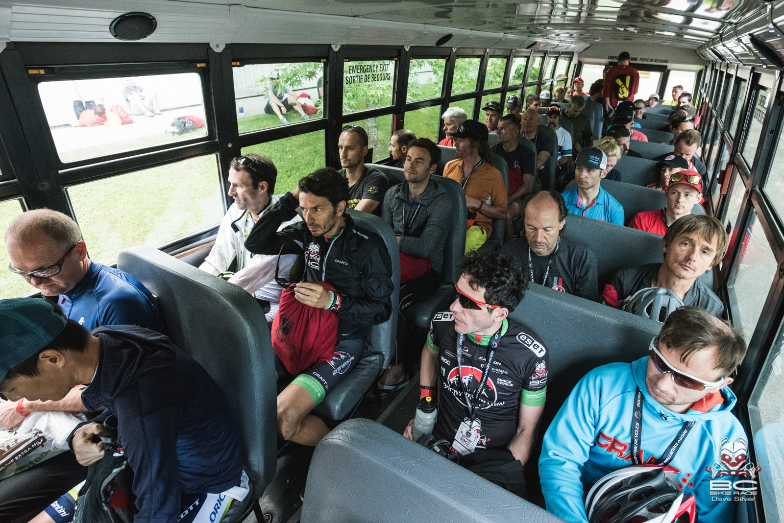 Racers ride the bus to Stage 3.