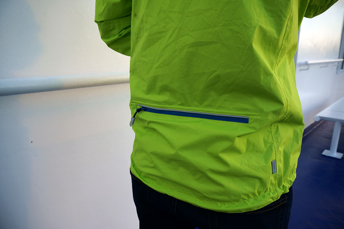 Hailing from the North East of Scotland, the Keela Saxon is the cheapest jacket on test but it’s certainly not lacking in features. Constructed from 2.5 layer Flylight Aqua fabric, the breathability felt on a par with the Haglofs L.I.M. 3.The hood is helmet compatible and features a wired peak (whoop!). The full length zip is waterproof with a concealed rain flap behind it. The back is scooped which gives good additional coverage for your lower back. The cuffs feature both Velcro adjusters and thumb loops while there are two zipped hand pockets. Sensibly, Keela have avoided mesh pockets and used waterproof material for the inner pocket which helps eliminate water ingress while giving you somewhere to put your hands in cold and wet weather when off the bike. At the back, there is a horizontal storage pocket. I never used it but it can be flipped inside out and used to pack down the jacket. There’s even a Velcro flap to cinch down the hood when not in use. While having a slightly more generous cut than the other jackets on test, it never felt flappy in use.