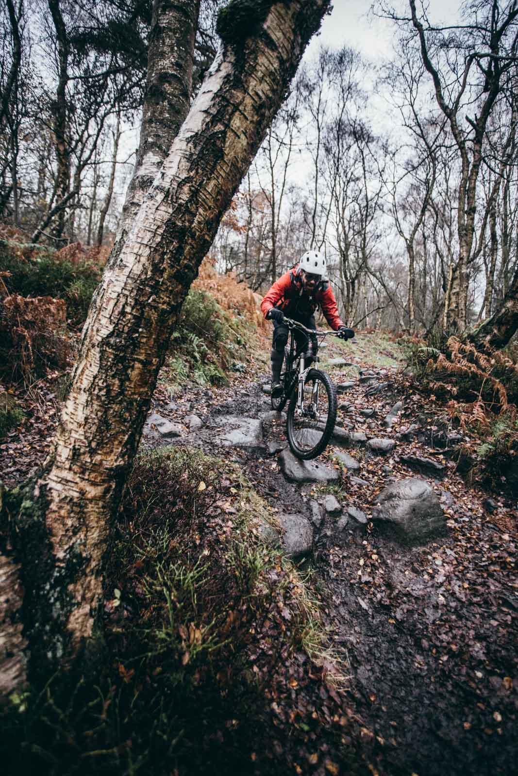 Some of Cotic’s local trails are absolutely fantastic, and of these particular mention has to go to the Devil’s Elbow, a coruscating braid of multiple-lined singletrack, complete with roots, stepdowns, precious little time to line up for the next obstacle, and more WOOP than you can shake a very large stick at. So much WOOP, in fact, that we felt the need to stop to take more pics, despite the Ineffable Weather.