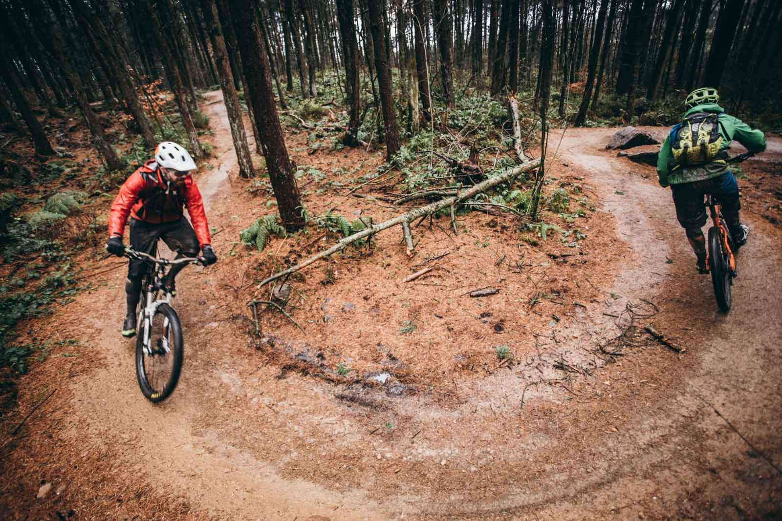 But shock duly pumped up, we trudged our way through the driving rain up to the trail in Lady Cannings – which with its vast amounts of flow, gentle jumps, bermed corners and perfectly-pumpable undulations, stood in delightful contrast to the rocky thrutchfest of much of the rest of the terrain. It was a perfect preamble to a well deserved (but somewhat soggy) lunch.