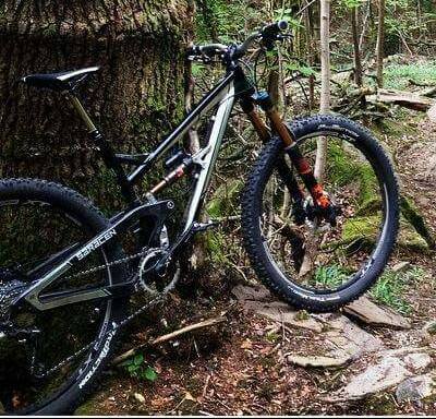 - A 2015 Saracen Aerial 150 mountain bike with full suspension – black and silver in colour with black and orange Fox Forks