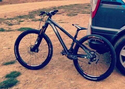 - A 2013 Saracen AVLX Dirtjump mountain bike with gears and Fox 831 Forks – all black in colour