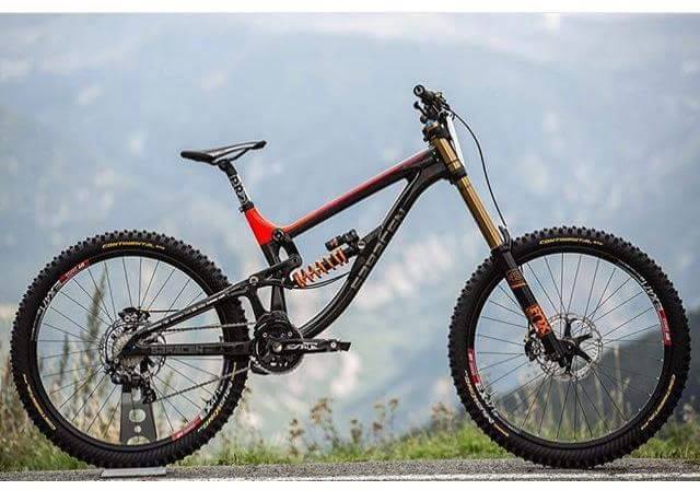 - A 2015 Saracen Myst Downhill race bike – black, white and red in colour