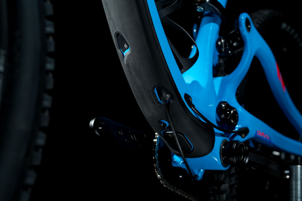 The Switchblade incorporates a Phoenix DH-inspired double wishbone rear triangle – the same design used in the Mach 6 Carbon. Suspension is still the well-proven DW-Link design, offering 135mm rear travel. Like the Mach6 and the Mach4 carbon, there is full cable and hose management on hand with every compatible bolt-on port and blanking plate you might need supplied with the the frame/bike. In a rare move for these times, there’s full (bolt on) front mech compatibility.