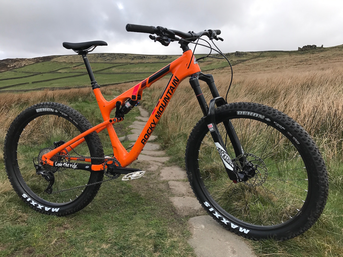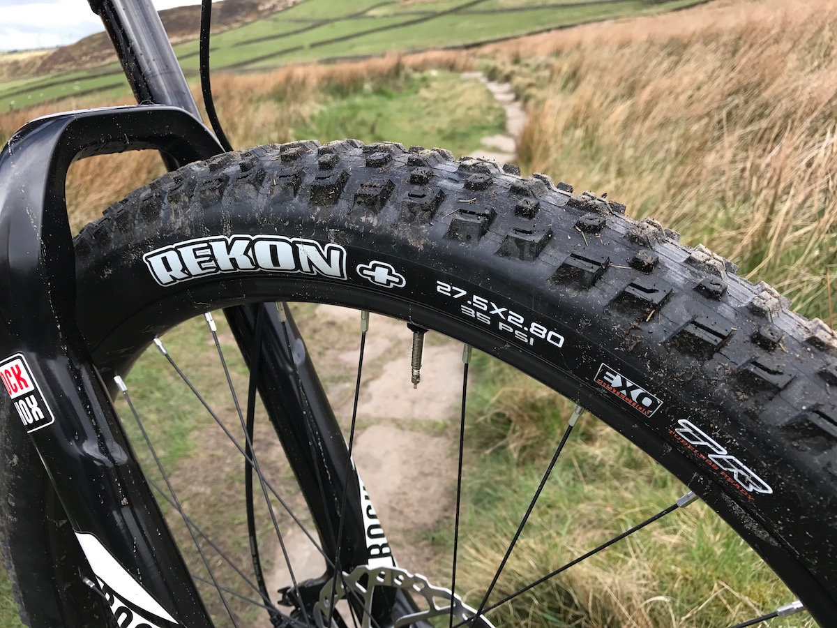 Rocky has spec’d Maxxis Rekon tyres front and rear on the Pipeline, with an intermediate tread pattern spread across a 2.8in wide casing. These have more beef to the tread blocks than a lot of other plus tyres on the market, which are often only designed for riding in Californian dust.
