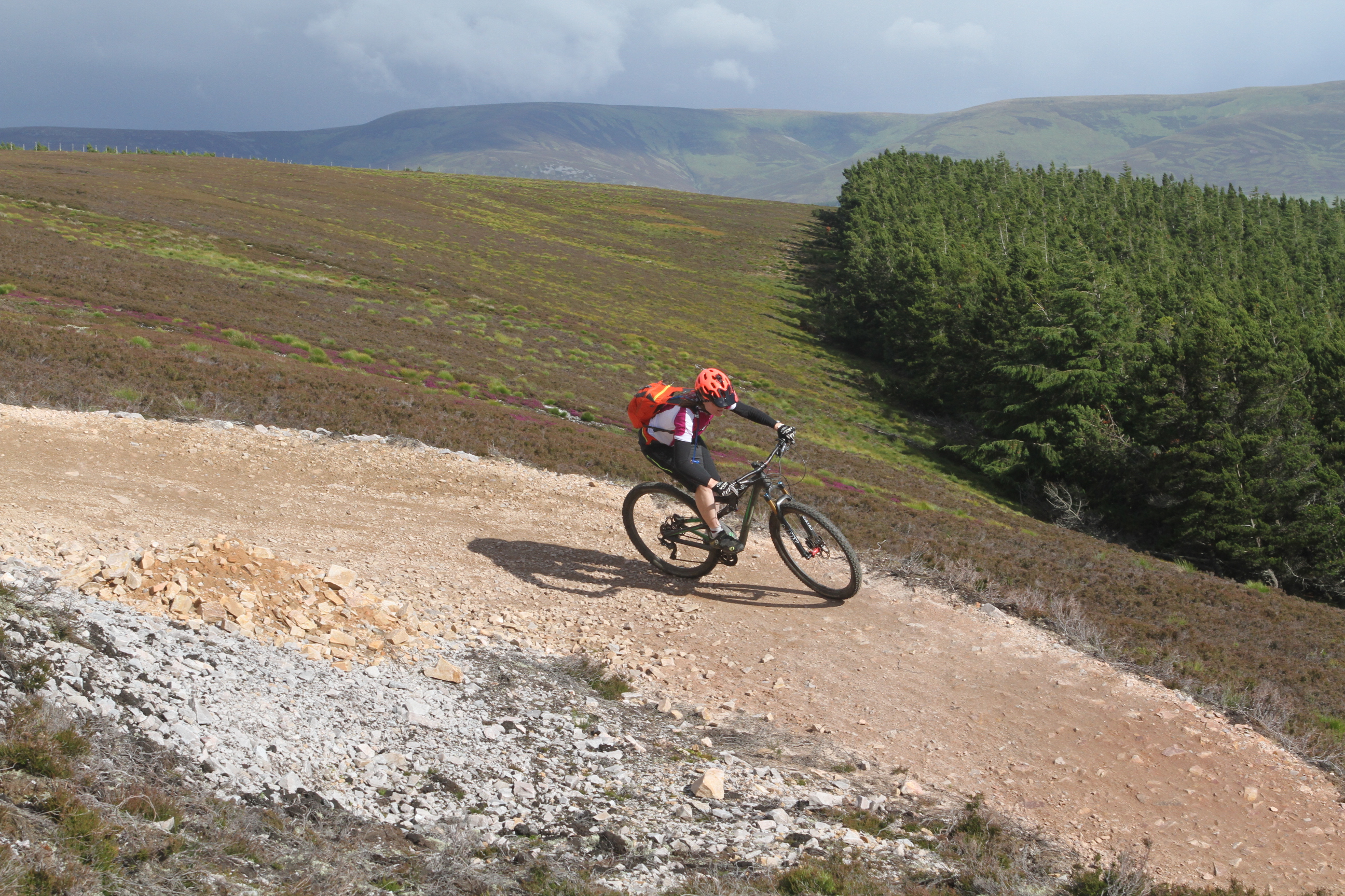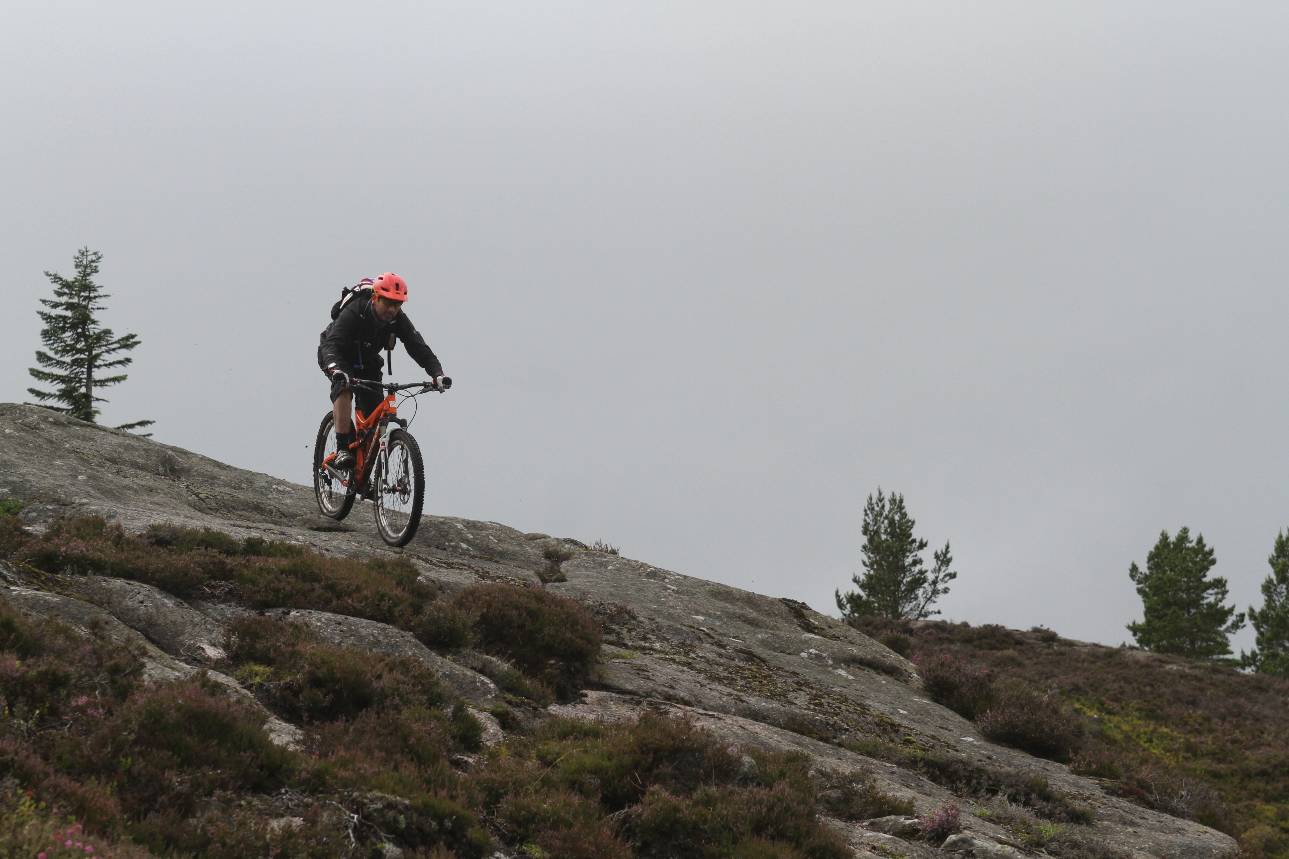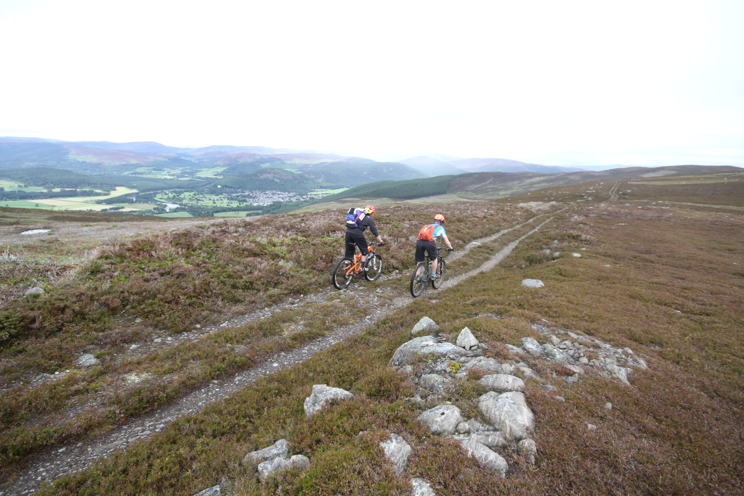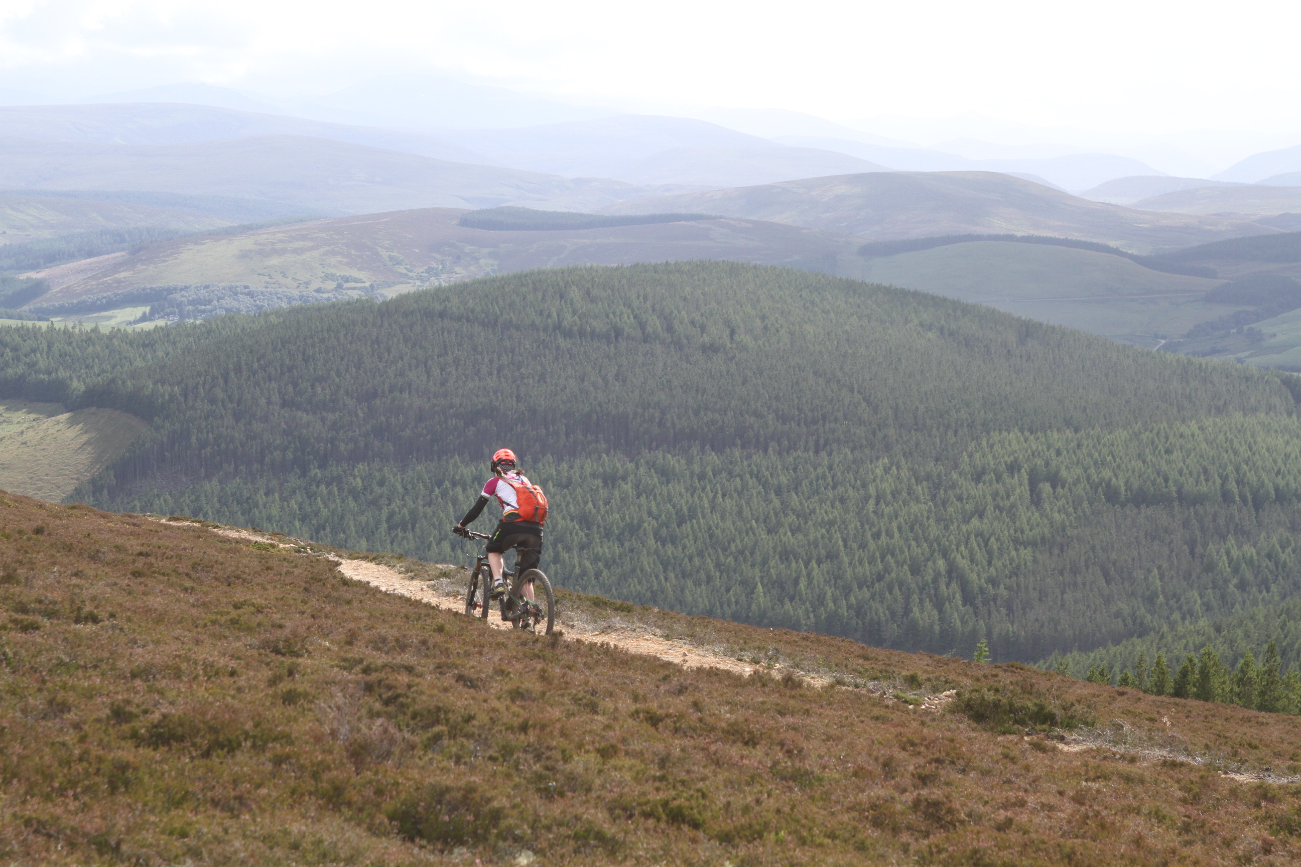 The climb up towards Mount Keen went straight from town. In the muggy atmosphere, it was a hot and sweaty pull, but we were rewarded with a great view and seemingly had the hills to ourselves. So far, so normal, but then we set off down a boggy track and then onto a barely visible trail in the heather. In the strange way that Scottish trails seem to do, this imperceptible line seemed to become more distinct the further we got from the main track, so that by the time we were on a remote edge of hillside, we had a bottom bracket-width trail snaking its way through the heather. Tight, twisty and testing and all but invisible until you were right on it. Just how it should be.