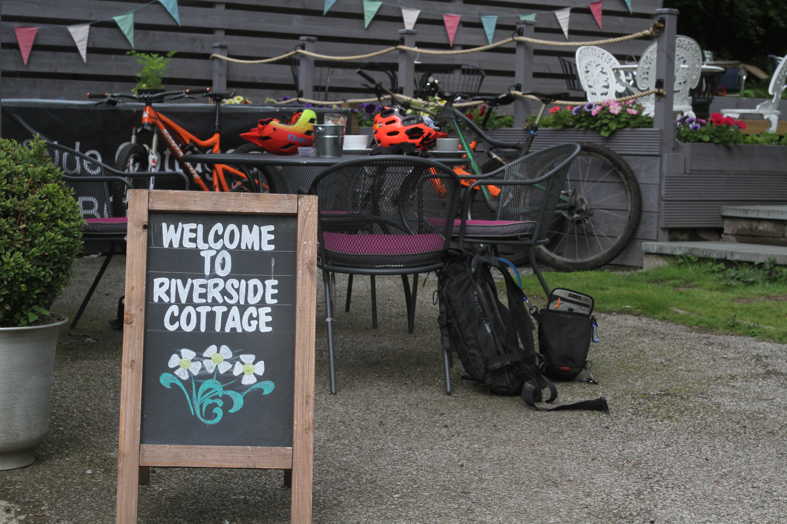 We leapfrogged our way down the trail, stopping for photos and snacks and stories, but always eager to discover which bit of heather or hidden rock was plotting to launch us into the undergrowth. Escaping without mishap, the trail brought us first out to the riverbank and in textbook trail perfection, to a cafe and some well earned refuelling.