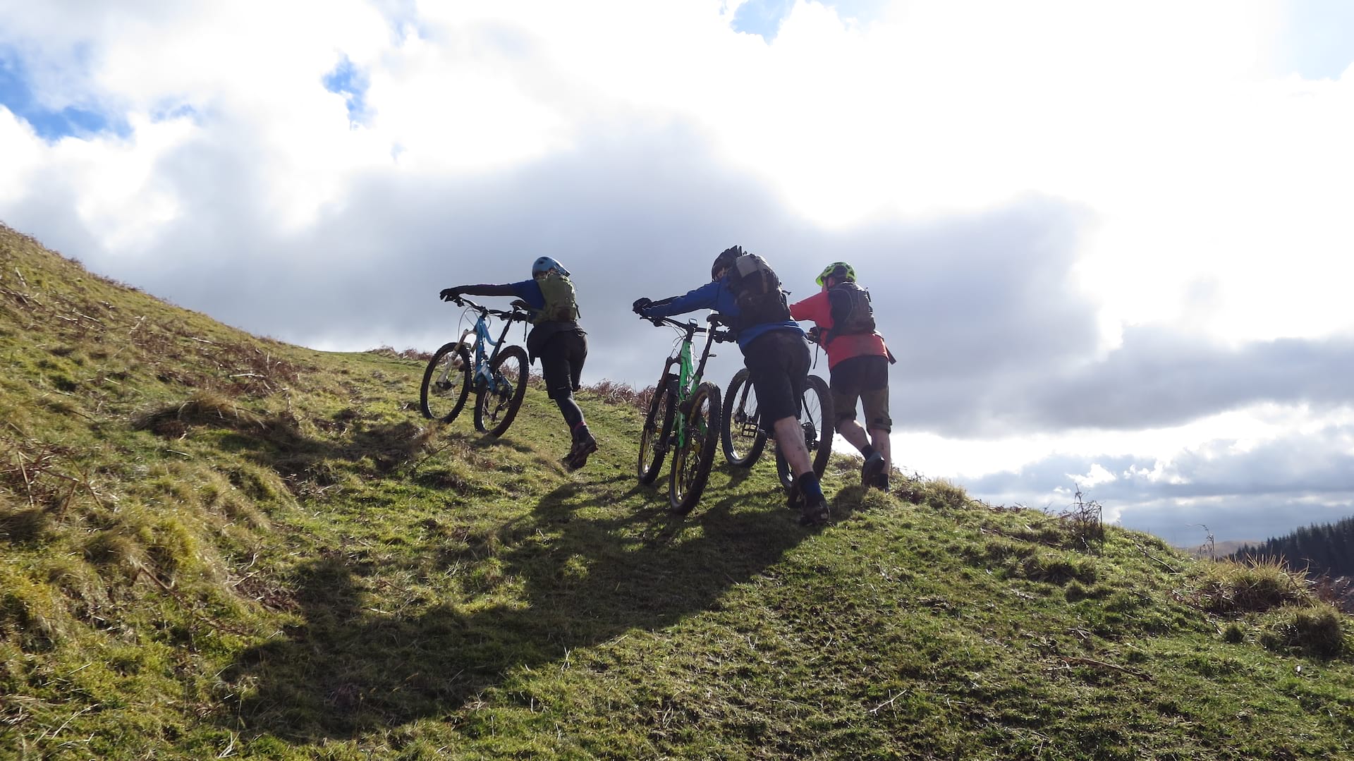 Willie doesn’t seem at all fazed by the change of plan and we soon have a Plan B – first a superb, narrow, off-camber traverse of The Middle, then a short, fast descent to a bridge over the Usway Burn (which Colin manuals over, natch). We’re going to gloss over the horror-fest of a climb which follows. I’d ridden it before in damper conditions and barely got about a third of the way up before lack of traction forced me to dismount. This time it was bone dry, so I had no excuse (except a heavy bag of camera kit…), and I did manage to clean it, but it wasn’t pretty. Or fun.
