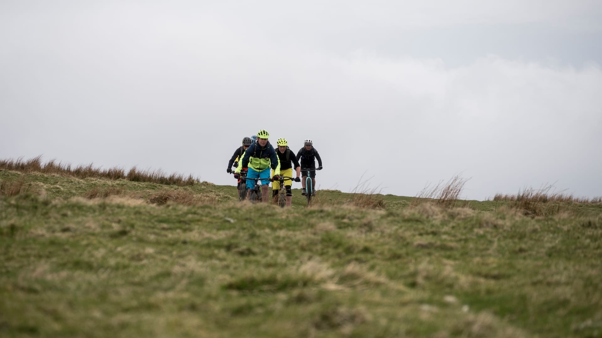 This isn’t the most pleasant surface to ride on, but it’s pretty fast and we’re soon off the end and standing at the top of the final descent with an amazing view over the hills of Northumberland stretching away into the distance.