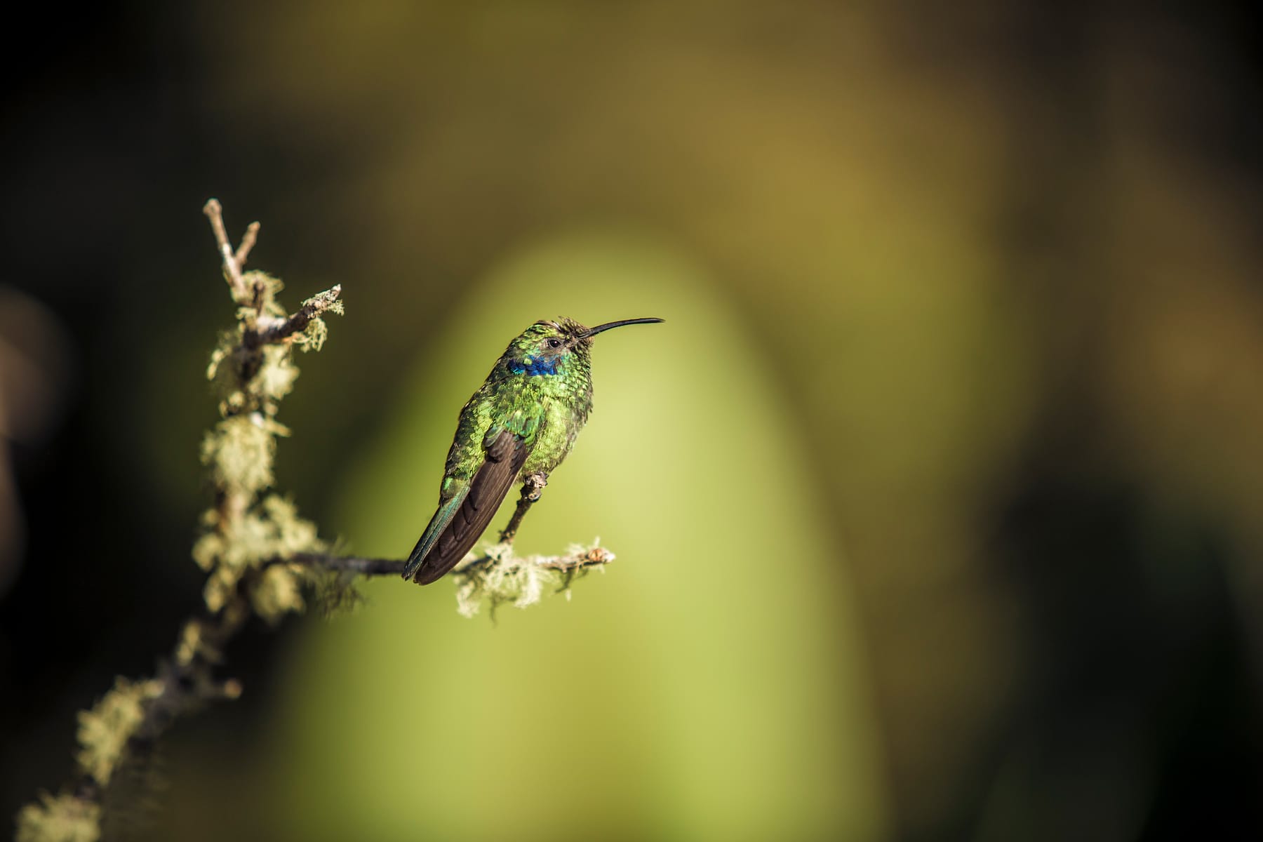 The journey takes us 2,500 metres above sea level. An old farm road leads us through ancient mountain villages, past stables with horses and chickens, to a scenic overlook. Here Paulo manoeuvres his car halfway into the bushes and stops. The view stretches out over green hills with a few meadows in between and, of course, coffee plantations as far as the eye can see. Just in the distance, on the horizon, the Pacific shimmers in the sun. But where is the trail? We follow Paulo through a thicket that doesn’t look at all like an entrance for a trail.