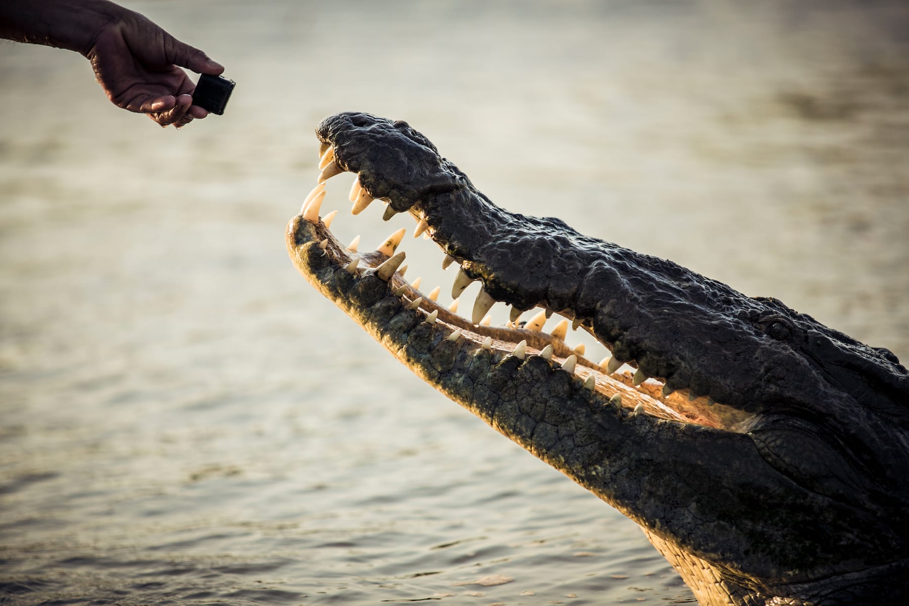 When we arrive in Hermosa Beach we can’t believe our eyes – a huge beach with dark sand, a pair of palm trees, a hammock, a surfing spot right in front of our hotel and no people! As if this paradise weren’t enough, there is also a mountain bike park right above us. Our last days begin with a morning of surfing. This is followed by a ride over beautiful rooty trails through the jungle right next to the beach. José the hotel guide manages to lure us out of our hammocks one afternoon to do a crocodile tour. We chug up the river in a small boat. José steers while his colleague Jimmy holds a bucket of chicken. It doesn’t take long before the first ‘tree trunks’ appear in the water. Then Jimmy jumps overboard into the knee-high water and immediately jaws bearing rows of long teeth begin to open. Jimmy throws the chicken a metre away from him. Some of the crocodiles jump towards him. “I’ll come here again with my children,” I say enthusiastically to José. “Yes, come again!” answers José, pointing at Jimmy, “I don’t know if he’ll still be here, but I look forward to seeing you!”