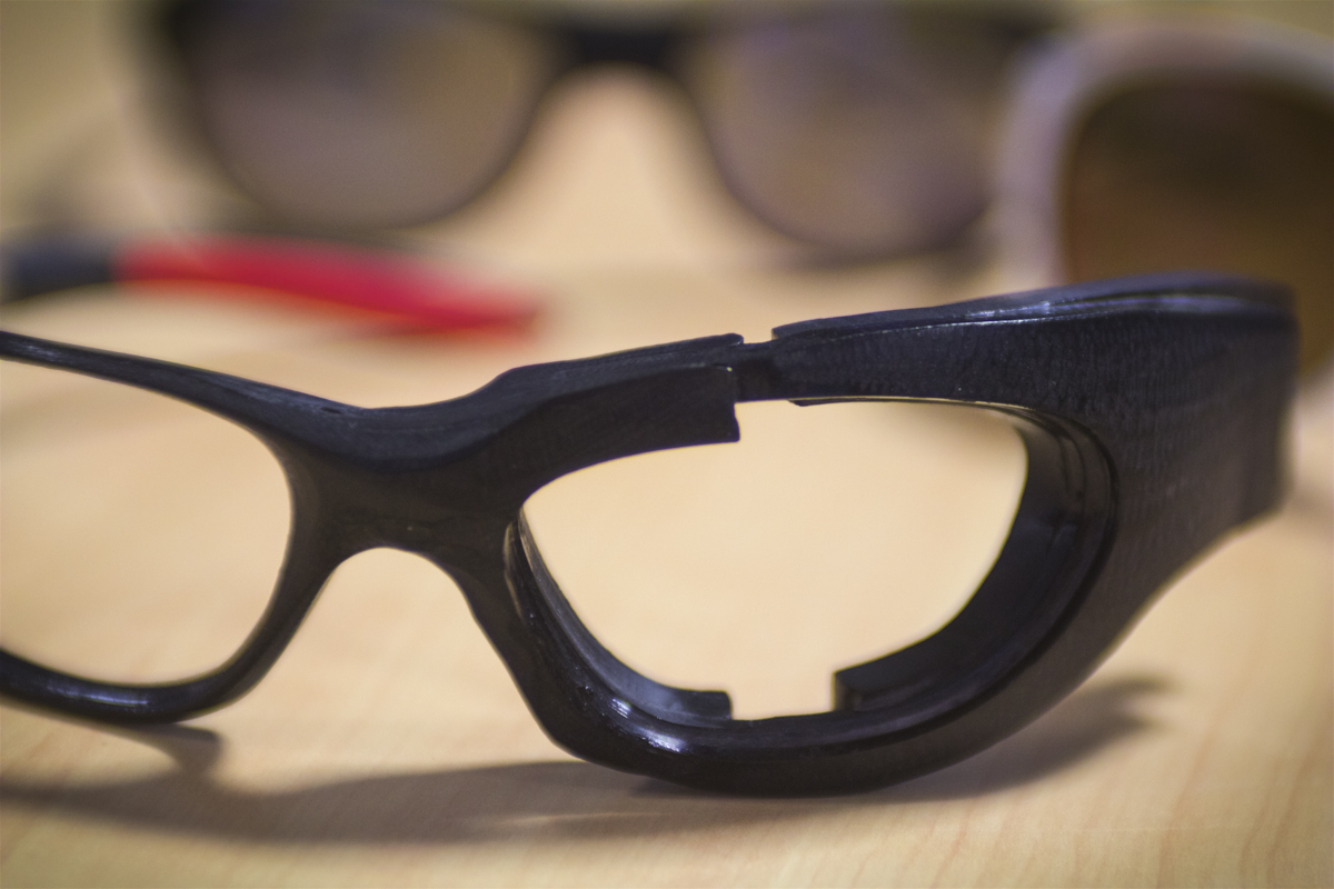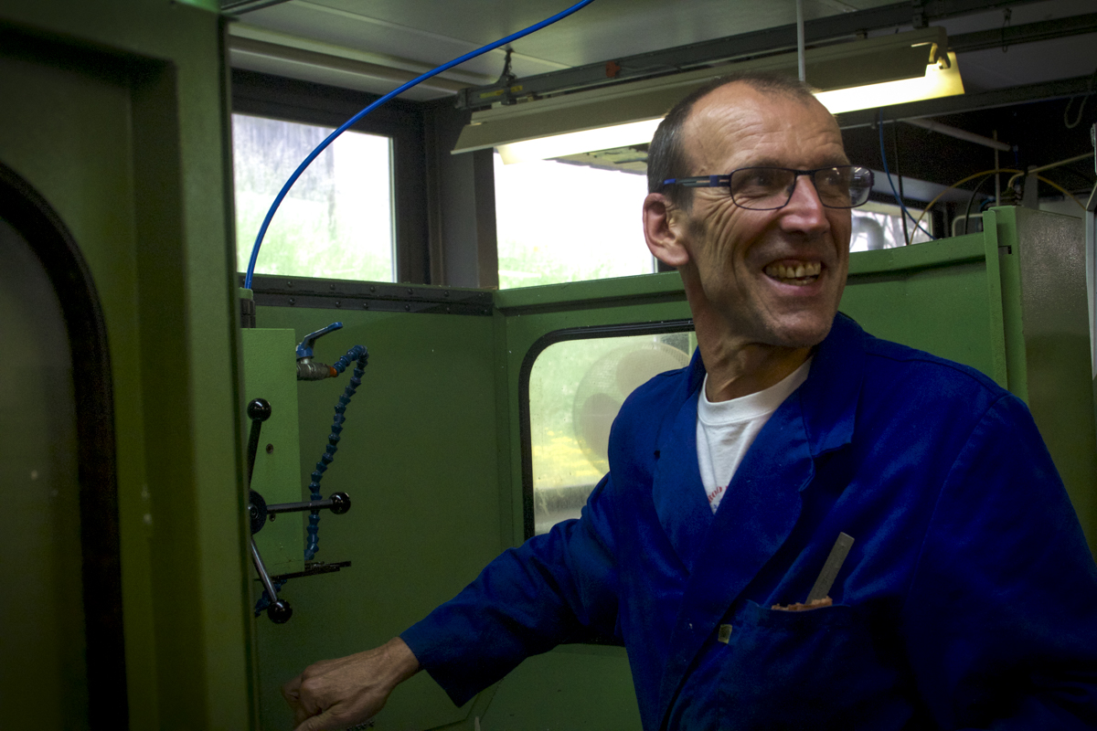 We stroll out the door, across the road, and into another workshop. We can smell this one before we enter it, for here the moulds meet with plastics and the first examples of what will become the new frames are born. Once the designers and engineers are happy that the moulds are correct, they will be packed onto the van to Romania, where the factory which mass produces the frames is situated. That van will then make the trip back to the village of Longchaumois where the glasses will be stored until they are to be despatched around the world.
