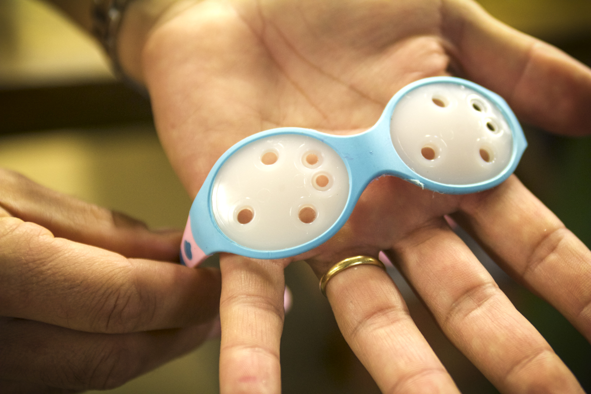 It’s just as well they’re a happy bunch, as it wouldn’t take much to find the workshop quite creepy. The moulds sit around the room looking like faces from Dr Who or Metropolis. That’s not a Cyberman watching you, but a mould for a pair of glasses which are formed in just a few pieces. That’s not a time travelling dark knight but a mould for a pair of children’s glasses. And that’s not the discarded eye sockets of a hundred horror dolls, but a box of early runs of sunglasses so small that they’d fit a toddler. We’re told that sun damage may be contributing to adult eye conditions such as cataracts and macular degeneration, and that sunglasses may be just as important for children as sunscreen. Having developed lenses to protect eyes from glacial glare and sun at altitude, Julbo sees protective eyewear for children as a natural development of its range and expertise.