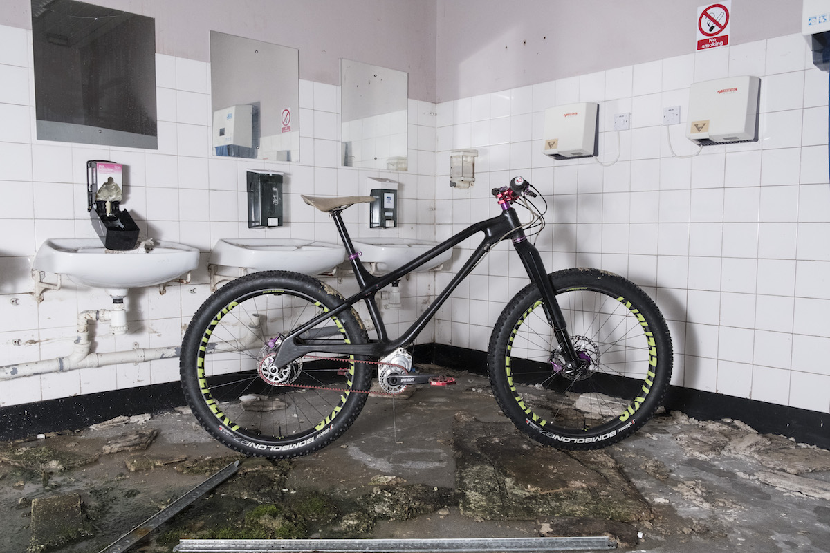Essentially, each frame is made in two halves. Everything behind the hump on the top tube junction is made as a standard mould. So the seat tube length, bottom bracket drop, and chainstay lengths are identical for each frame. However, the head tube junction is completely unique to each individual frame. Customers can choose a head angle between 66–68°, and a reach measurement between 400–455mm long. Olsen claims this approach should cover most riders from 5ft 5in through to 6ft 5in.