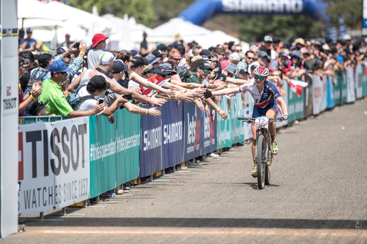 But what of XC racing? Despite being the only off road cycling discipline in the Olympic line up, and plenty of popularity in other countries, it’s failed to capture the imagination of the wider public in the UK. It can’t be for lack of spectacle – courses these days are often very technical, with riders tackling obstacles on hardtails that would have many a trail rider off and pushing. It can’t be the Lycra – road cycling in the UK has no problems with popularity. Maybe it’s the fact that it’s hard – an hour or so of racing with your heart rate in the red – but lacks the romance of wild eyes staring out from a face full of mud that comes with cyclocross? (Mind you, ‘cross isn’t that mainstream popular either). Think cyclocross and you also think beer and chips, while XC is more recovery protein shakes on the rollers. Even our national governing body, British Cycling, hasn’t appeared terribly interested in the sport, despite its Olympic status – although there are some good signs that’s changing – not least Annie Last’s success in the World Championships in Cairns.