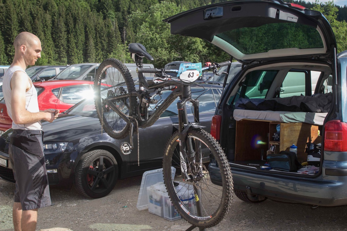 Maybe you can’t fork out for a big van, so how about you turn the family estate car into your adventure wagon? This guy was quick to point out that the bed box comes out pretty easily for when he needs to get people in the car. With a bed for one and room for a bike and a few tools etc, this could be a good solution for those of wanting to have just a few pre race overnight stays across a season, rather than multi day adventures.