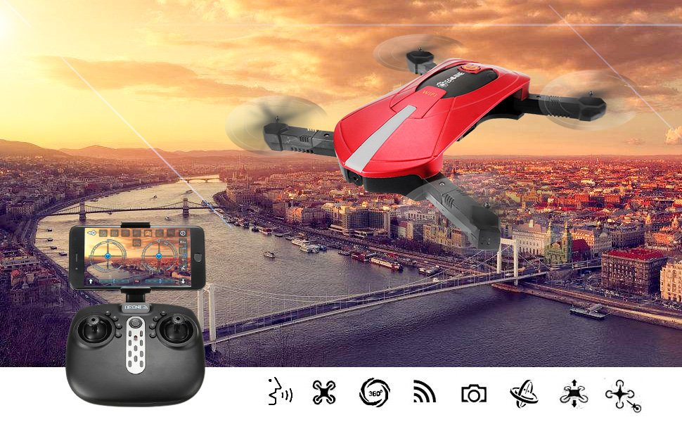 Easy to carry foldable drone with built in camera for taking selfies, or getting a shot of the open trail while out on rides.