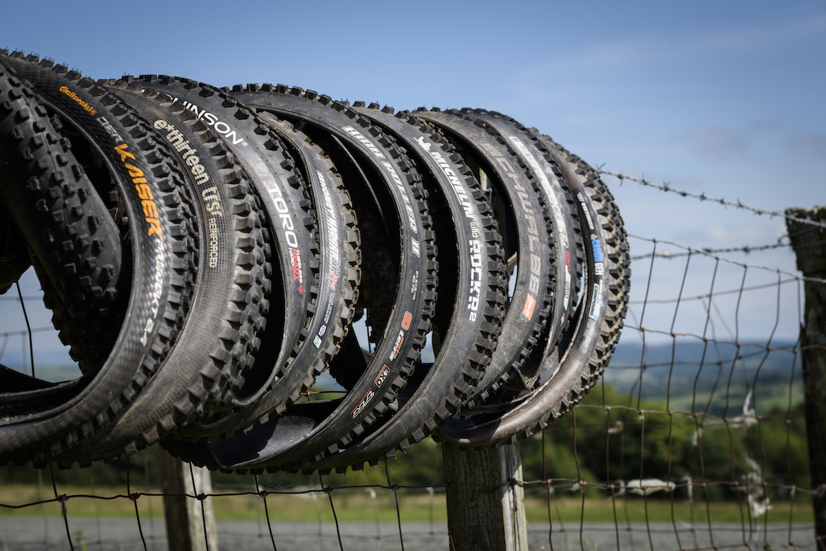 And so this test was born. What we’ve got here are ten high-end trail tyres with a wide range of casings, compounds and technologies, all designed to work in the mixed conditions of UK riding. To keep things consistent we limited the test to 27.5in wheel size, 2.3in–2.4in width, tubeless-ready tyres – all ideally suited to trail bikes. Ranging in price from £35 to £70, these are tyres you’ll want to upgrade to. They are, on the whole, versatile and tough, although some will excel in the wet, and some work better in the dry. We’re not necessarily looking for the lightest or the fastest, but the best all-round tyres that you don’t have to constantly swap around for different trail conditions.