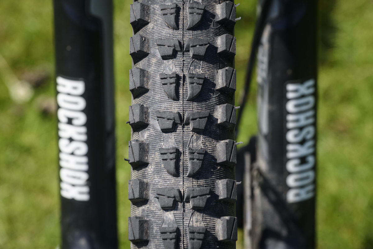 Bigger, chunkier knobs are a good thing right? Wrong! Well, not always… Bigger knobs do a great job of digging down into mud and loose dirt but they can be skittish on harder surfaces as the rubber folds under itself and gives way, leading to a loss of grip just when you need it most. Likewise, smaller knobs are great on harder surfaces and roll faster on tarmac and fire roads, but clog up quicker and lose traction when things get loose. You also need to strike a balance between traction for pedalling, braking traction, and directional grip for cornering, and that’s without taking into account personal preference and riding style. Rounder tread profiles can build confidence in some riders as there is a less noticeable transition from the centre blocks to the cornering edges, while others prefer having a squarer profile with a definite transition onto the cornering edges of the tyre and really love the feeling of those edges hooking up into the ground.