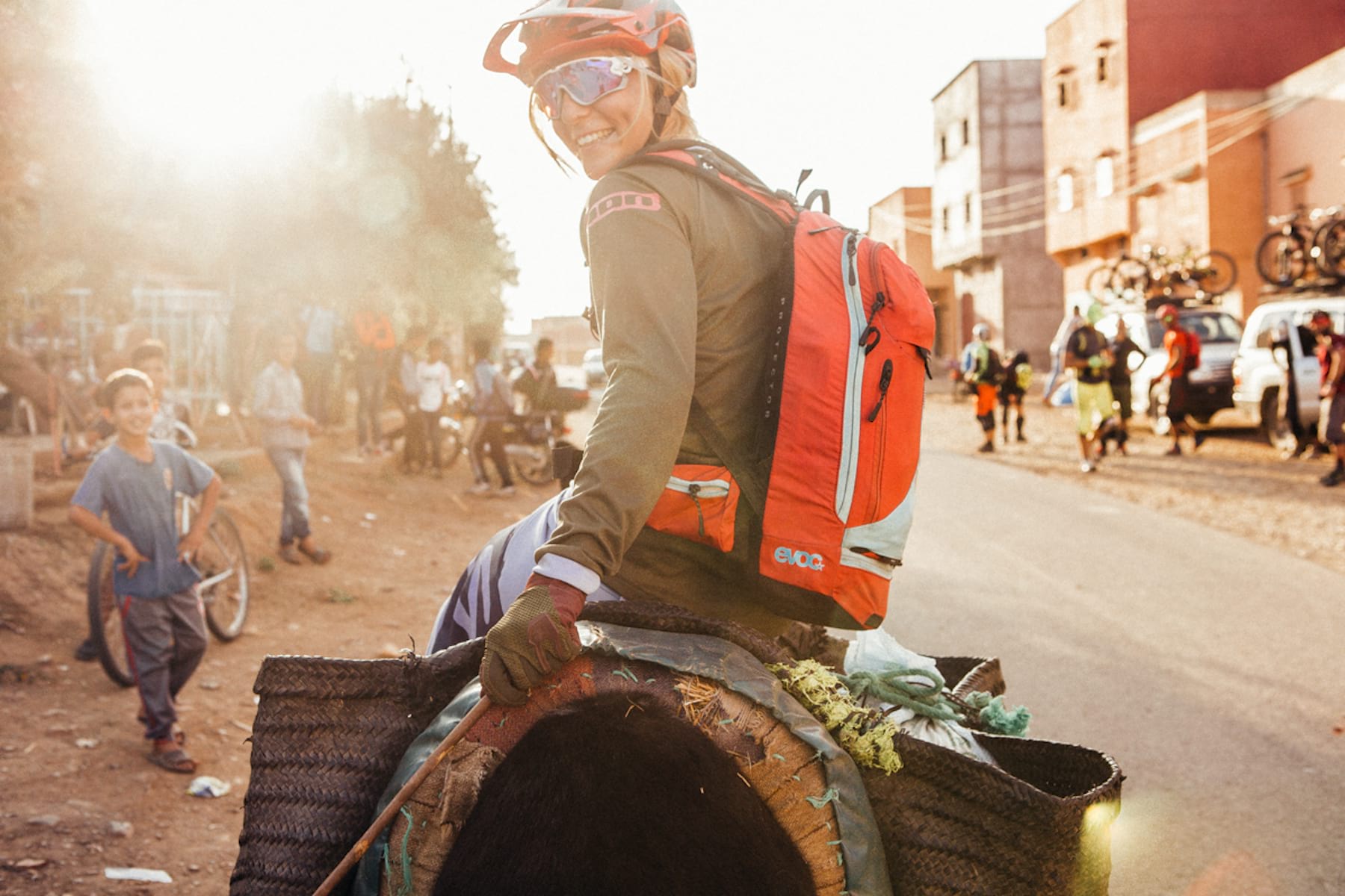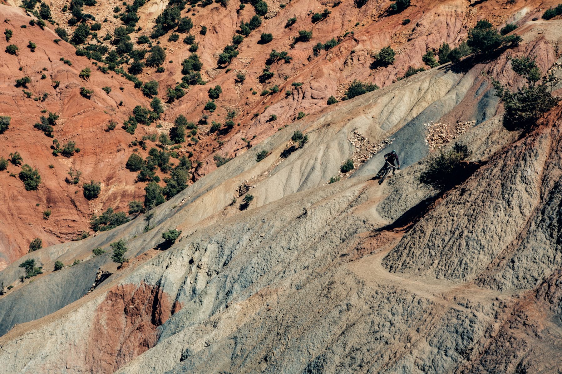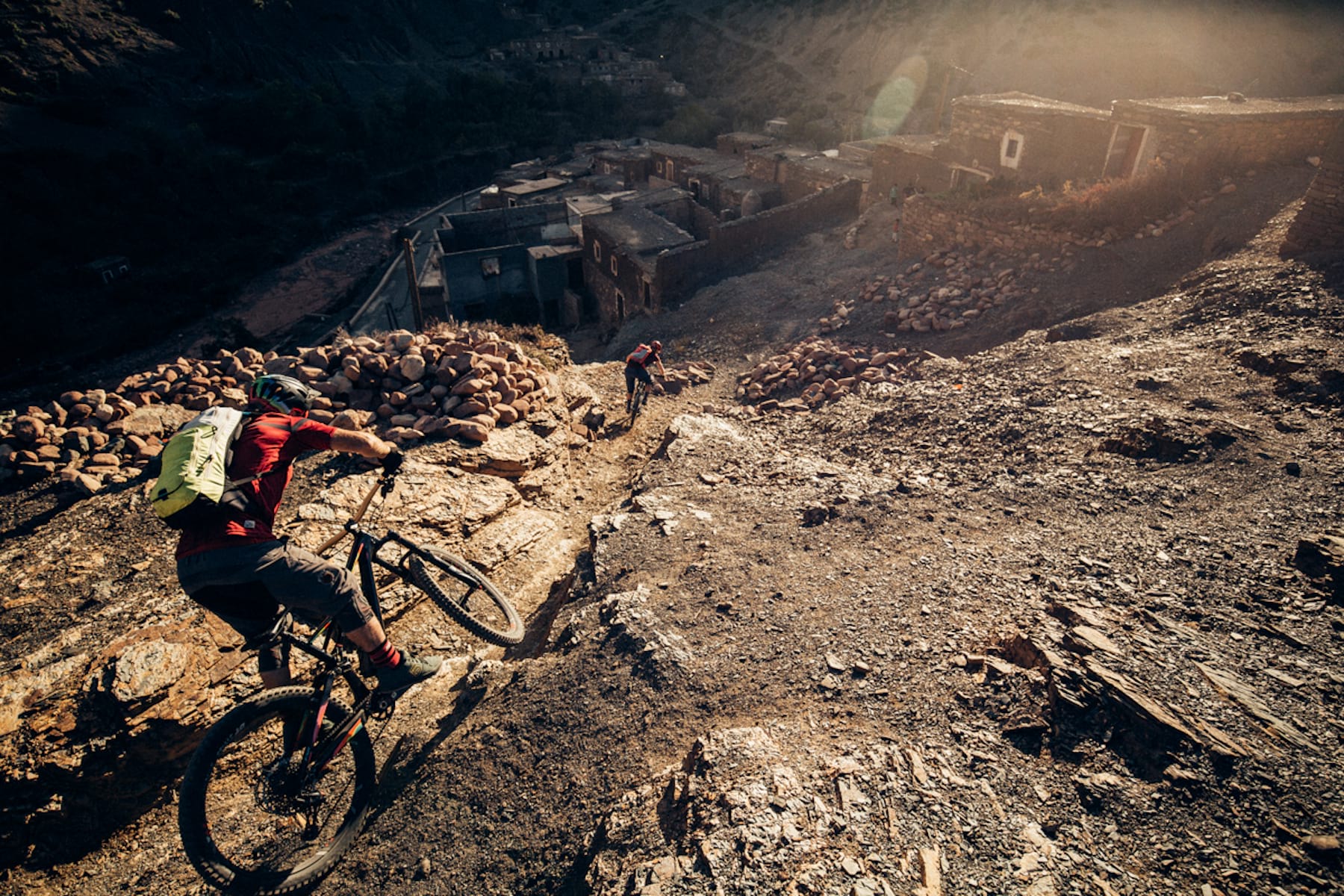 “You see that mountain over there?” he asked, while pointing far away from the plateau we are pedalling through. “Fabien Barel did some lines there while filming for the New World Disorder series.” Others might come to do the total opposite – to escape from the outside world in luxurious hotels in the middle of the Atlas Mountains, or even get together with local people to live and experience life from their side.